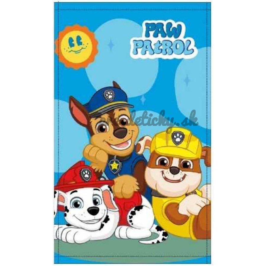 Chlapčenský uterák Tlapková patrola - Paw Patrol s obrázkom šteniat Chase, Marshalla a Rubble, ako si užívajú slnečný deň, je skvelou voľbou pre malých fanúšikov tejto obľúbenej série.