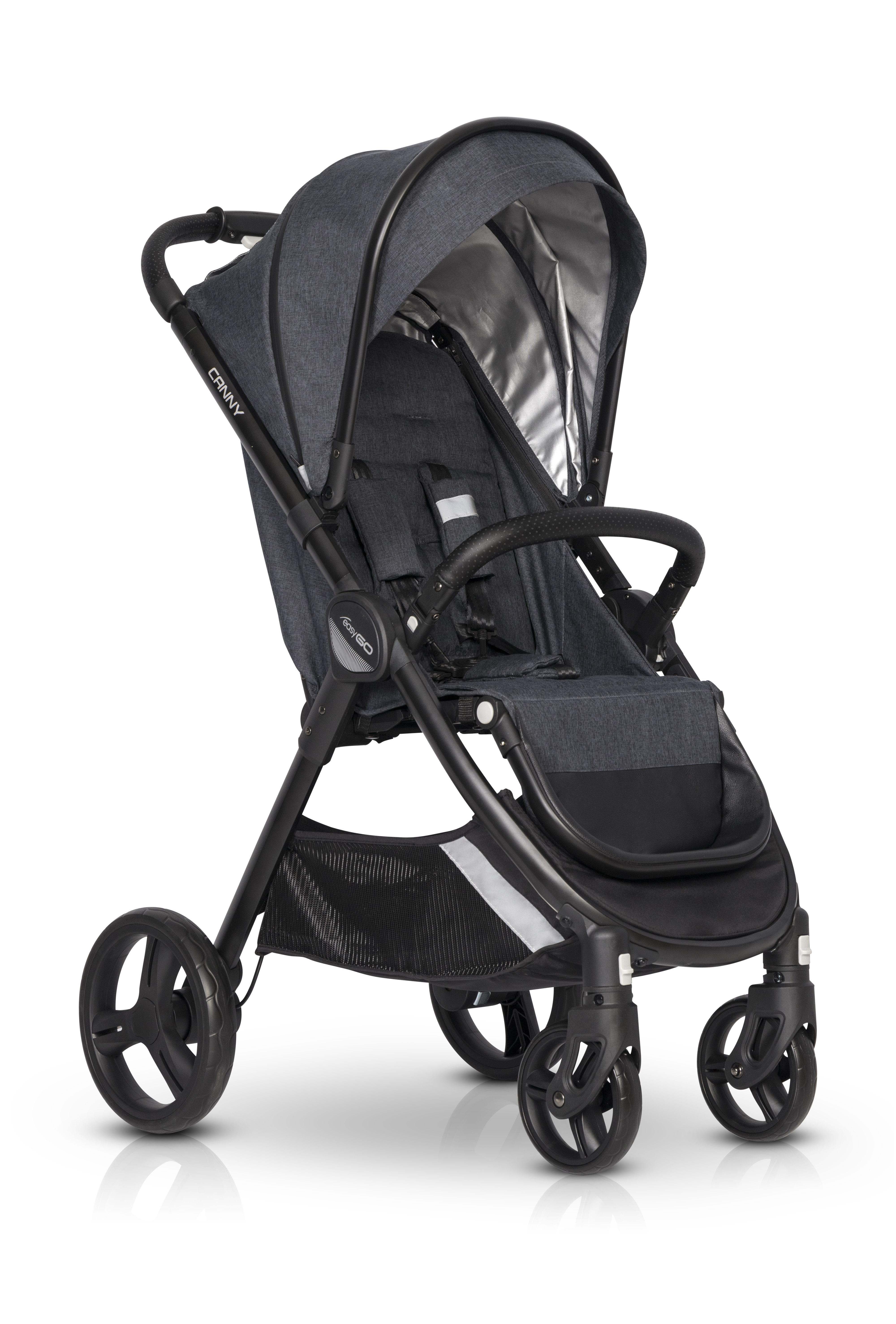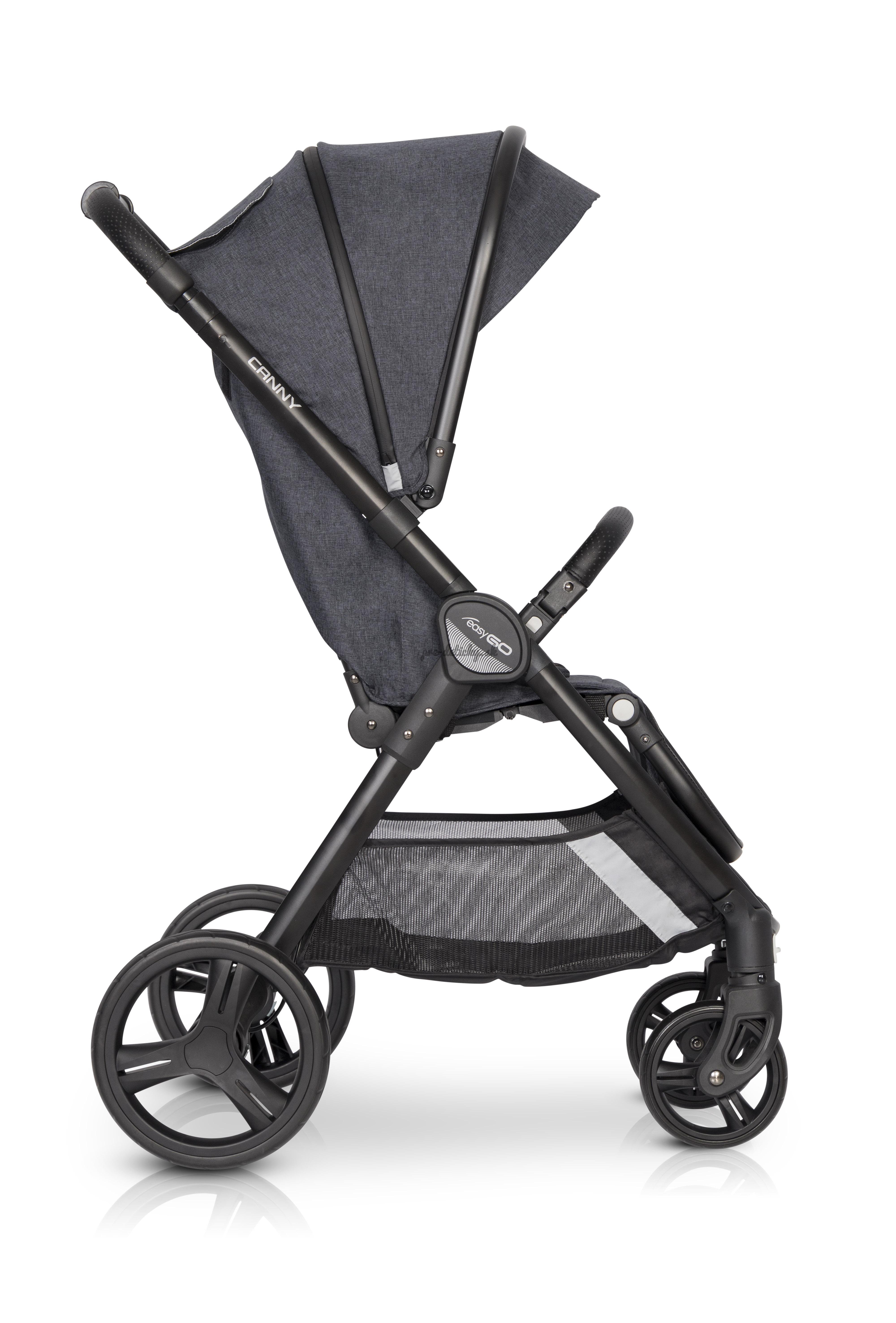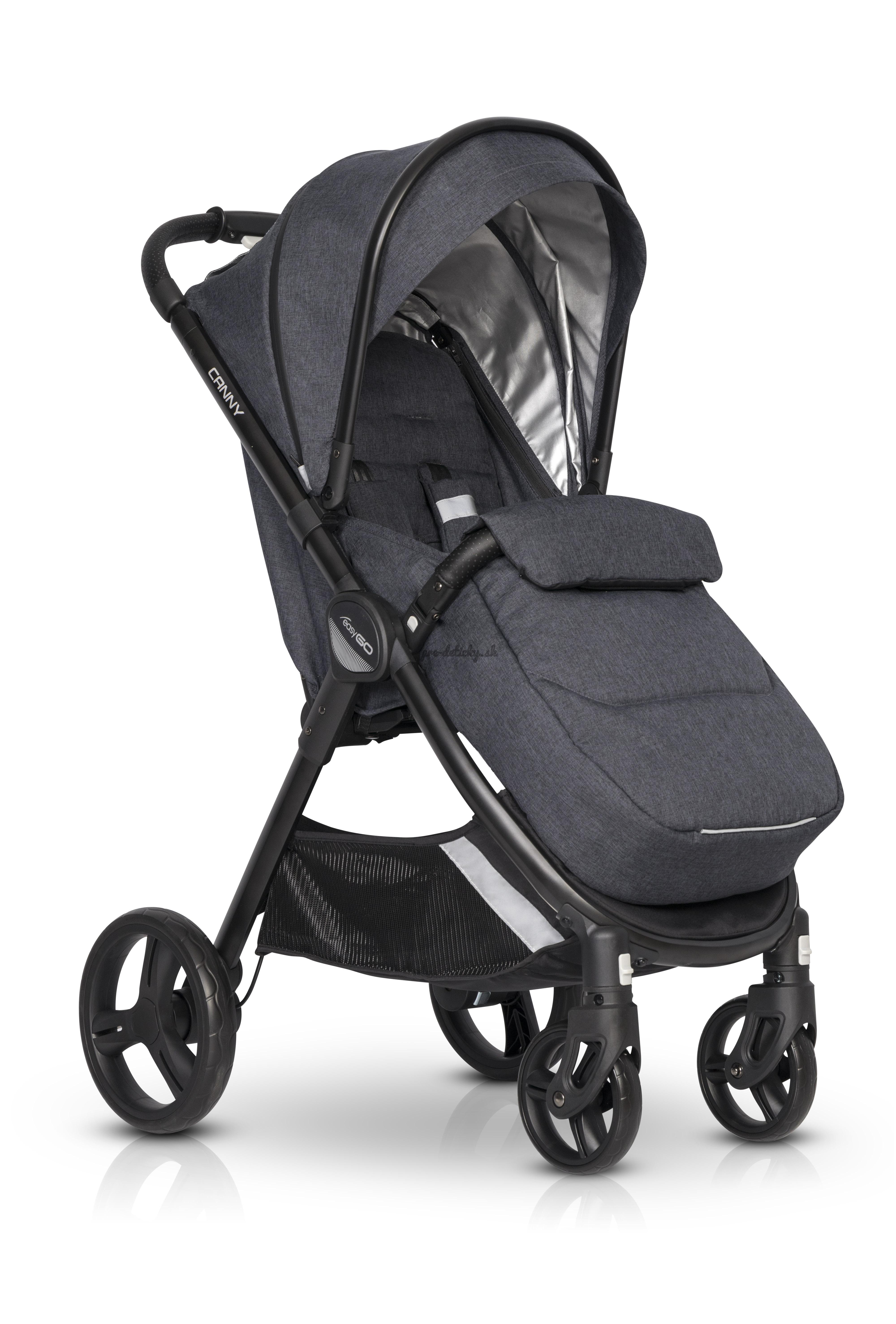 Kočík CANNY kombinuje dve zdanlivo vzájomne sa vylučujúce vlastnosti. Je to veľký pohodlný kočík s veľkými odpruženými kolesami, ktoré sa dajú zložiť do veľmi malej veľkosti. Tento efekt sa dosiahol vďaka inovatívnemu skladaciemu systému, ktorého mechanizmus sa nachádza presne v strede kočíka, konkrétne pod sedadlom. Veľkou výhodou EASYGO CANNY je teleskopické výškové nastavenie rukoväte. Vďaka tomu bude vozenie kočíka vhodné pre všetkých rodičov bez ohľadu na ich výšku. Teleskopické nastavenie nielen umožňuje zdvihnúť rukoväť, ale tiež ho posunie ďalej od zadných kolies, takže vysoký rodič už pri riadení kočíka nebude kopať do kolies. Čalúnenie CANNY bolo navrhnuté s ohľadom na bezpečnosť. Na každej strane kočíka sa používajú reflexné prvky na zlepšenie viditeľnosti počas večerných prechádzok. Pri výrobe čalúnenia sa používajú najkvalitnejšie textílie ekologického typu, ktoré sú mimoriadne odolné a zároveň príjemné na dotyk. Kočík CANNY je vybavený úplnou ochranou proti dažďu, ktorá pokrýva celé čalúnenie kočíka. Fólia má vetrací systém vo výške detských úst. Okrem toho má CANNY zimné kombinézu (tzv. nánožník). Sedadlo kočíka CANNY je od narodenia certifikované pre deti. Operadlo sa dá nastaviť do jednej zo 4 polôh vrátane úplne ležiacej polohy. Detské bezpečnostné madlo má ďalšiu funkciu. Po zložení ho možno použiť ako praktickú rukoväť na prepravu kočíka alebo ako rukoväť na ťahanie poskladaného kočíka na zadných kolesách (rovnako ako pri ťahaní kufra). Madlo a rukoväť kočíka zdobí odvetrávaná ekologická koža, novou funkciou je použitie špeciálnej tepelnej tkaniny vo vnútri slnečnej clony. Tepelná tkanina zabraňuje zahrievaniu kočíka pod strieškou počas horúcich slnečných dní. Štúdie ukázali, že strieška zabezpečená touto tkaninou sa zahrieva o viac ako 50% pomalšie ako tradičné kabíny v iných modeloch kočíkov. Strieška má tiež vystuženú slnečnú clonu a ďalšiu časť, ktorá je skrytá pod estetickým zipsom odolným proti pretekaniu vody. Umožňuje rozopnutie striešky a preklopeniu dopredu, ochráni dieťa pred nízkym slnečným žiarením