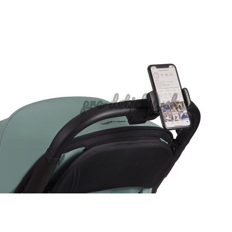 Držiak na mobil, ktorý je možné jednoducho upevniť na kočíky Harvey 3, Harvey5, Rockey S, Rockey M, Rockey L, Miley, Jackey, Rudey, Jimmey, Mini. Na upevnenie na rukoväť alebo madlo kočíka.