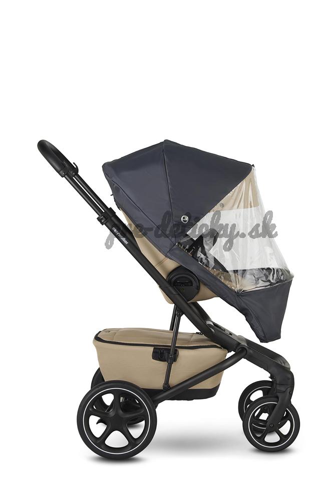 Transparentná pláštenka chráni dieťa pred dažďom a vetrom.