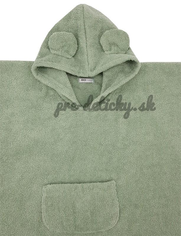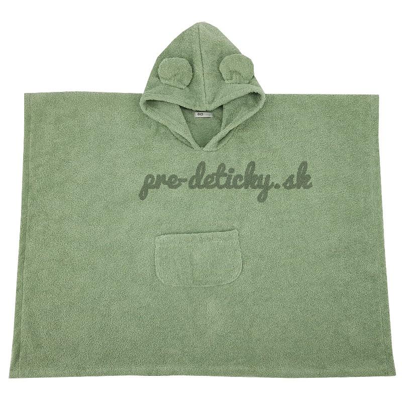 EKO Pončo bavlnené s kapucňou a uškami Olive green 75x120 cm