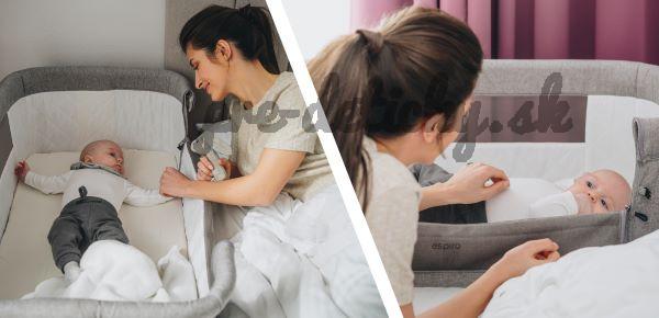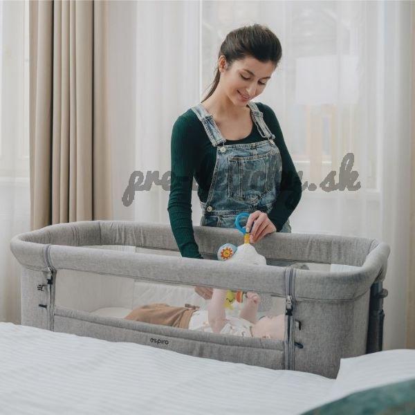 Vďaka funkcii sklopnej bočnice možno postieľku Cloud pohodlne umiestniť k posteli rodičov. Po príchode nového člena rodiny je najdôležitejší pokojný spánok bábätka a pohodlie jeho opatrovateľov. Uľahčenie starostlivosti a ošetrovania od prvých dní života je vďaka intuitívnym riešeniam bezproblémové. Bočnicu postieľky je možné rýchlo odopnúť pomocou zipsov a zložiť, čím sa vytvorí pohodlný prístup k dieťaťu v ktorúkoľvek dennú alebo nočnú hodinu. Ak s rastom dieťaťa už funkcia nie je potrebná, látku odviňte a bočnú stranu zapnite do východiskovej polohy.