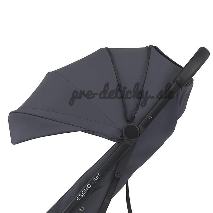 Espiro Just je kočárek s věkovou kategorií 0+. Proto je vhodný jak pro novorozence, tak pro děti do 22 kg. Kočárek Espiro Just je kombinací funkčnosti a designu. Vyznačuje se velkými koly, díky kterým se nemusíte starat o povrch, po kterém se má kočárek pohybovat.
