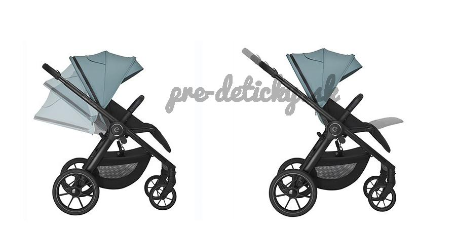 Športová časť kočíky yoga je obojstranná - možno ju pripevniť v oboch smeroch jazdy.