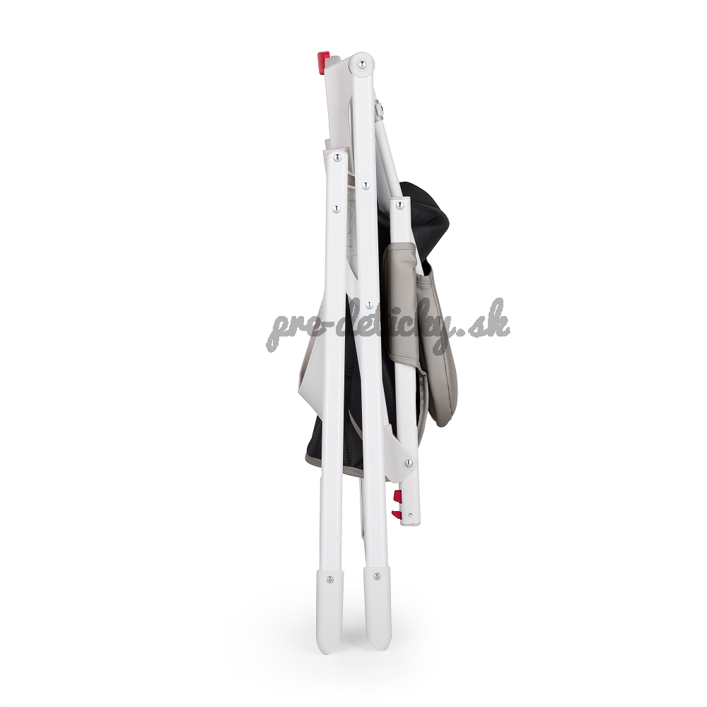 Napriek kompaktným rozmerom je stolička vybavená priestranným prešívaným sedadlom z PU, 3-bodovými bezpečnostnými pásmi, odnímateľným podnosom a nastaviteľnou opierkou nôh. Keď vaše dieťa doje, stolička sa v priebehu niekoľkých sekúnd bez námahy zloží.