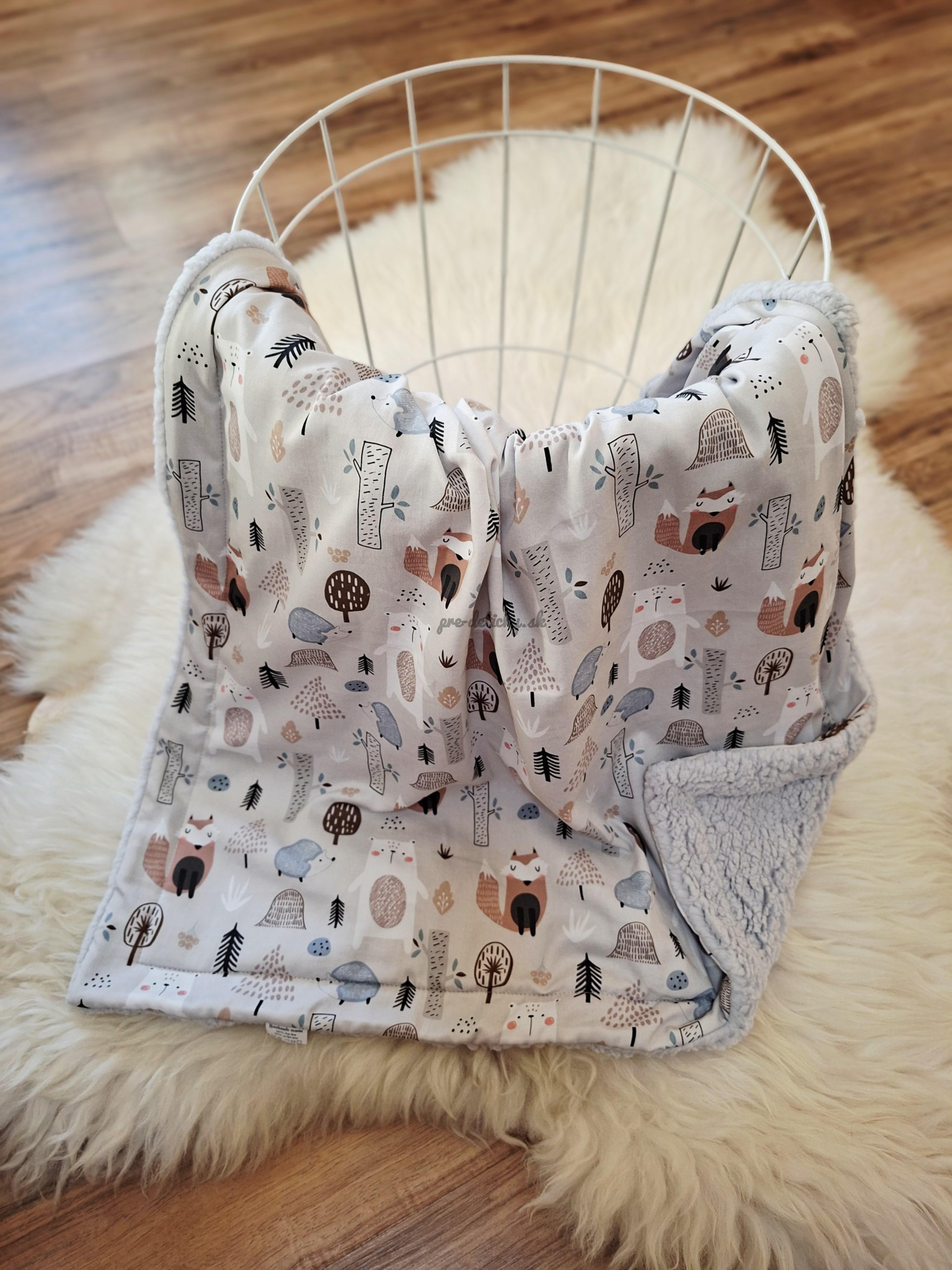 Handmade deka zimná sivá 70x95cm lesné zvieratká