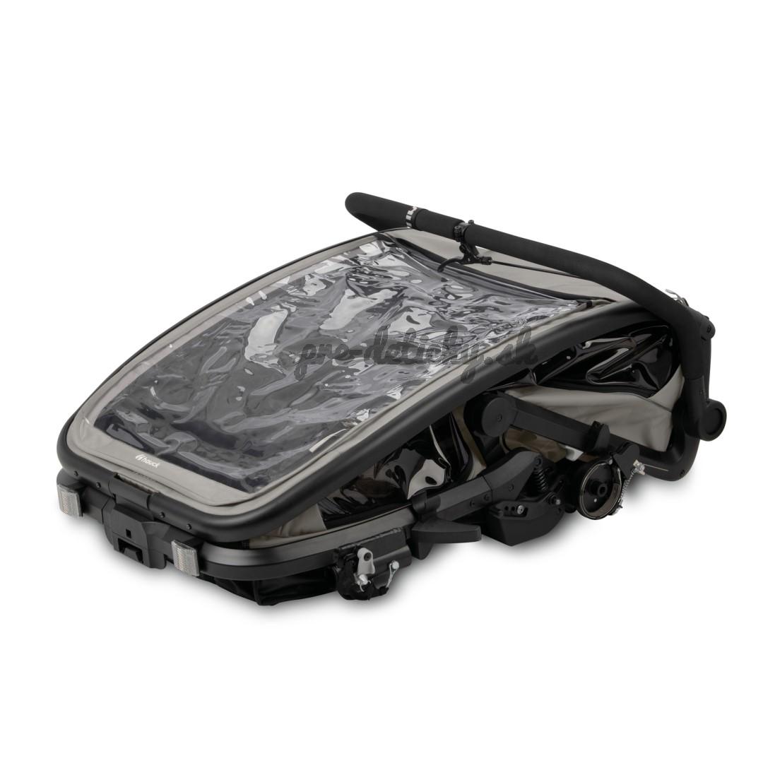 Dobrá ochrana - Cyklovozík má odnímateľné tónované bočné okná a striešku 3v1 ktorá poskytuje ochranu pred vetrom, slnkom a hmyzom – skladá sa z pláštenky, slnečnej clony s UV 50+ ochranou a sieťky, ktorá poskytuje dostatočný prísun vzduchu. V športovom režime máte nad vozíkom úplnú kontrolu vďaka ručnej brzde a bezpečnostnému remienku na ruku, pri bežnej jazde je možné tiež aplikovať nožnú brzdu.