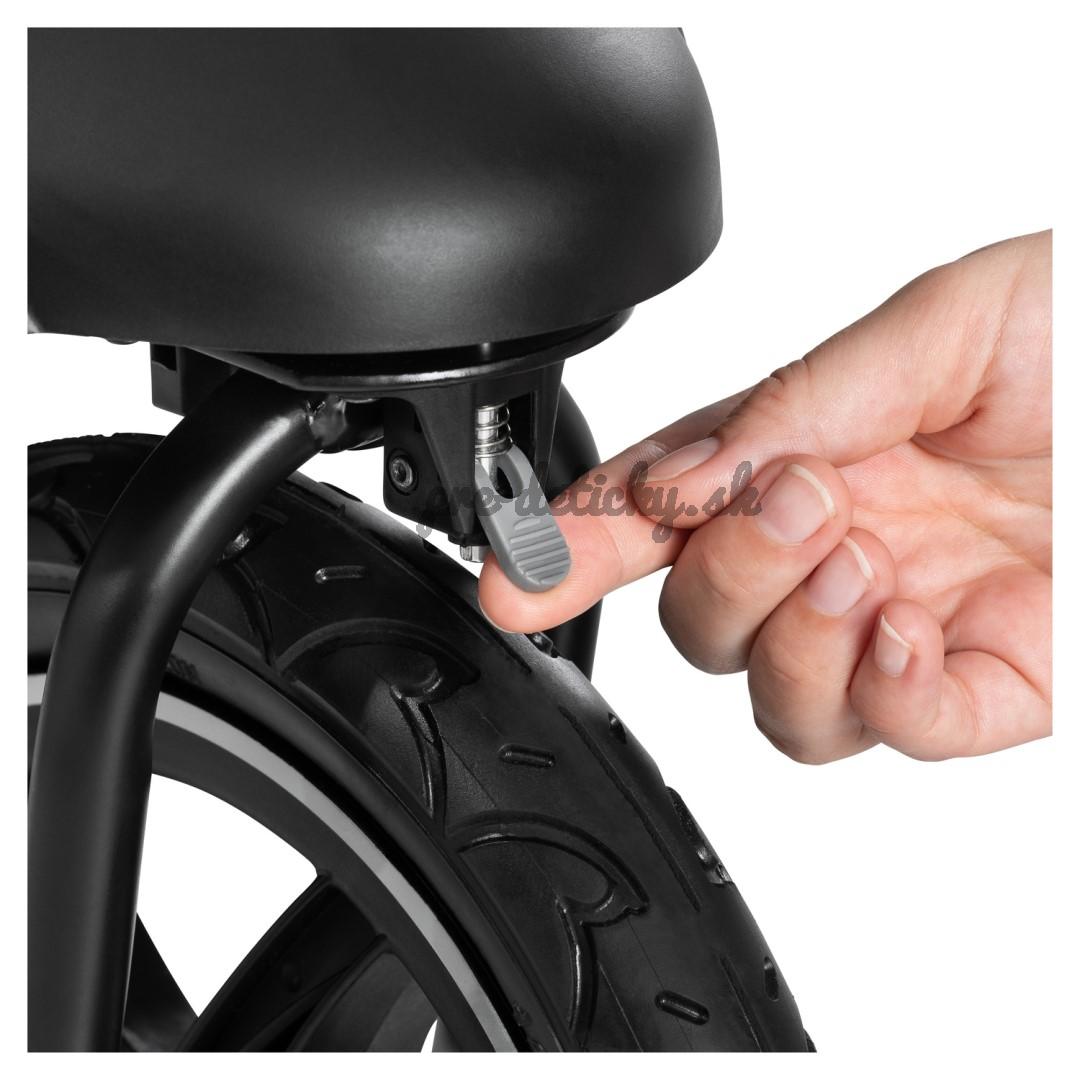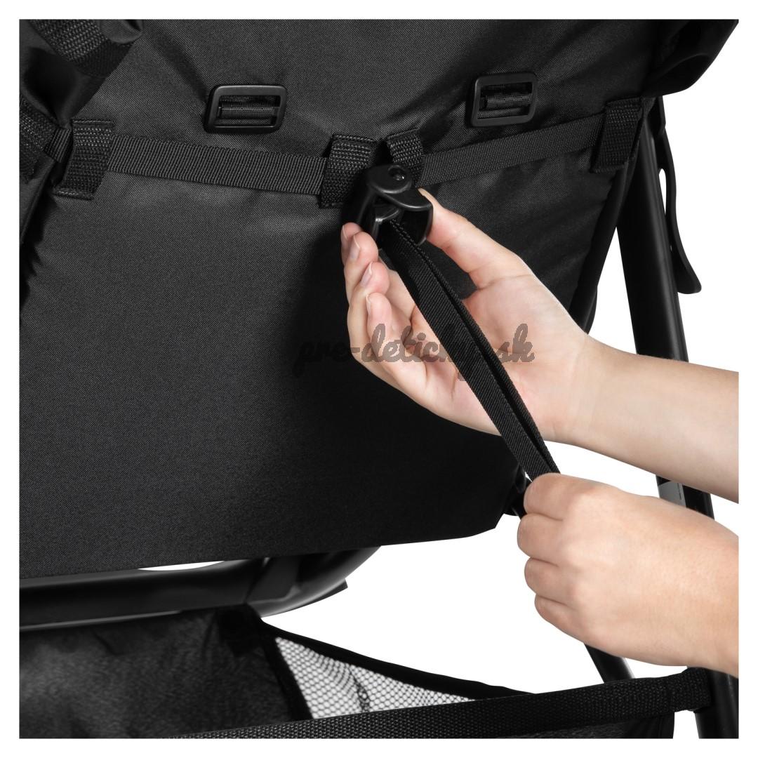 Aby ste strávili Váš deň komfortne, môžete posúvať polohu rukoväte o 30 cm a nastaviť ju tak primerane k Vašej výške. Bezpečie Vašej ratolesti zaistí 5bodový pás, brzda a predné madlo, ktoré sa pri nastupovaní jednoducho vyklopí do strany.
