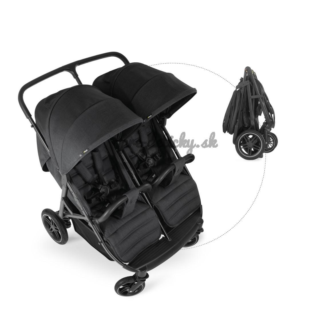 Aby sa Váš potomok cítil v kočíku príjemne, môžete obe sedadlá individuálne nastaviť až do polohy v ľahu. Extra veľké slnečné striešky s UV ochranou 50+ je možné predĺžiť a optimálne tak chrániť svoje dieťa pred slnkom. Výhľadové okienka so sieťovinou sa postarajú o optimálnu cirkuláciu vzduchu a poskytnú pohľad na vašich najmilších.
