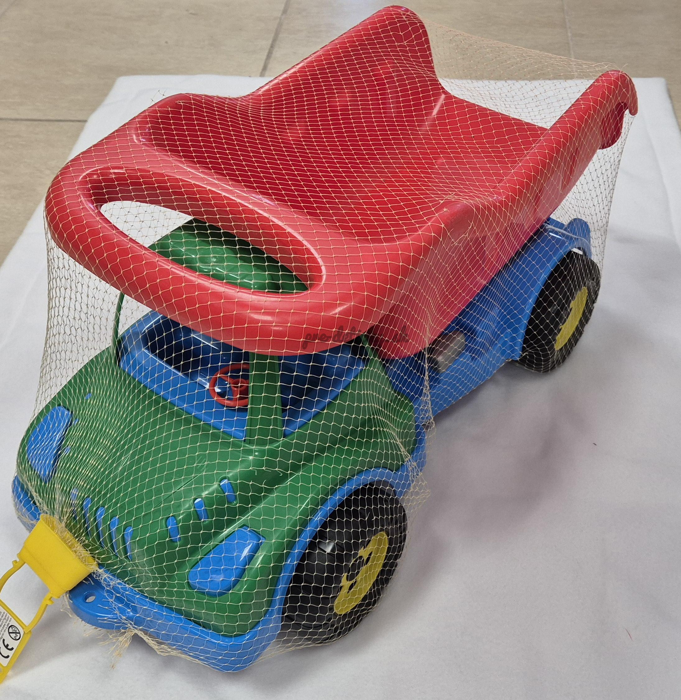 Hračkárske nákladné auto má pekné pestré farby a tvarom pôsobí realisticky. Veľké vrúbkované kolesá robia z tohto autíčka ideálnu hračku do piesku. Pracovné autíčko pre deti znesie naozaj veľký náklad. Dá sa s ním hrať doma, ale aj vonku či na pieskovisku.