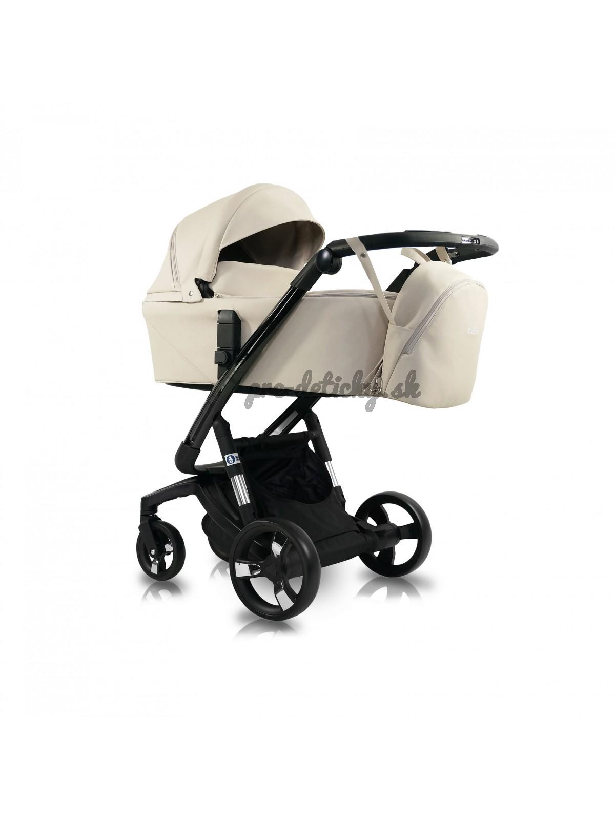 – obsahuje priestranný batoh z ekokože, priestranný kôš s ľahkým prístupom, profilovaný pršiplášť zaisťujúci pohodlie pri prechádzkach v daždivých dňoch, vbudovaný sieťku proti hmyzu v strieške kočíka, nánožník,