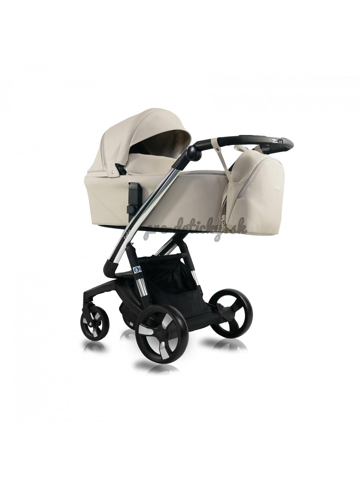 – obsahuje priestranný batoh z ekokože, priestranný kôš s ľahkým prístupom, profilovaný pršiplášť zaisťujúci pohodlie pri prechádzkach v daždivých dňoch, vbudovaný sieťku proti hmyzu v strieške kočíka, nánožník,