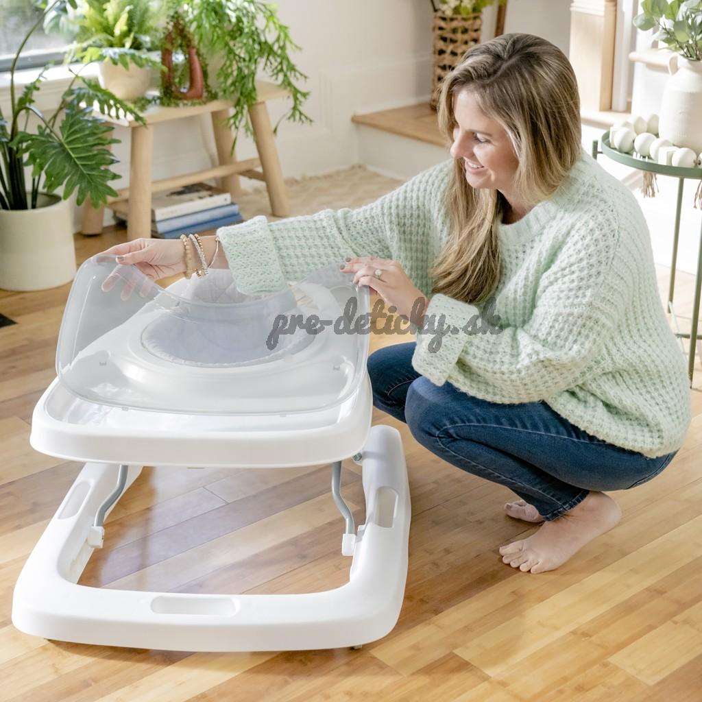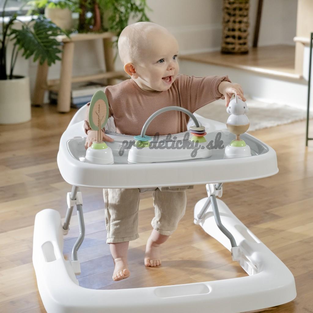 Režim aktívneho chodítka podporuje prvé kroky dieťaťa, zatiaľ čo režim tlačenia pomáha udržať dieťa pri chôdzi v pokoji. 3 odnímateľné hračky inšpirované prírodou majú prísavky na pripevnenie k iným podnosom alebo stolíkom. Chodítko sa ľahko udržiava v čistote - obsahuje veľký pultík s odnímateľnou vložkou podnosu bez BPA, ktorý je možné umývať v umývačke riadu, podložku na sedadlo možno prať v práčke a hračku jednoducho utrieť. Mäkká plyšová vložka na sedenie zabezpečí dieťatku pohodlie, zatiaľ čo pevný rám pomáha udržiavať dieťa v bezpečí. Konštrukcia chodítka zabezpečuje jednoduché skladanie, skladovanie a aj prenášanie. Bezpečnosť je posilnená gumovými kolieskami, ktoré brzdia rám. Možnosť nastavenia rámu chodítka do troch výškových polôh zabezpečuje správny vývoj vášho dieťaťa, pretože udržuje chodidlá vo vhodnej polohe. Neutrálny moderný dizajn sa bude hodiť do každého interiéru
