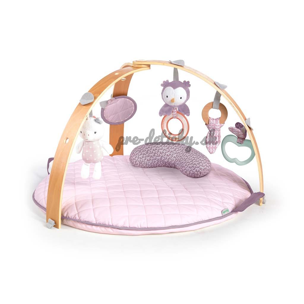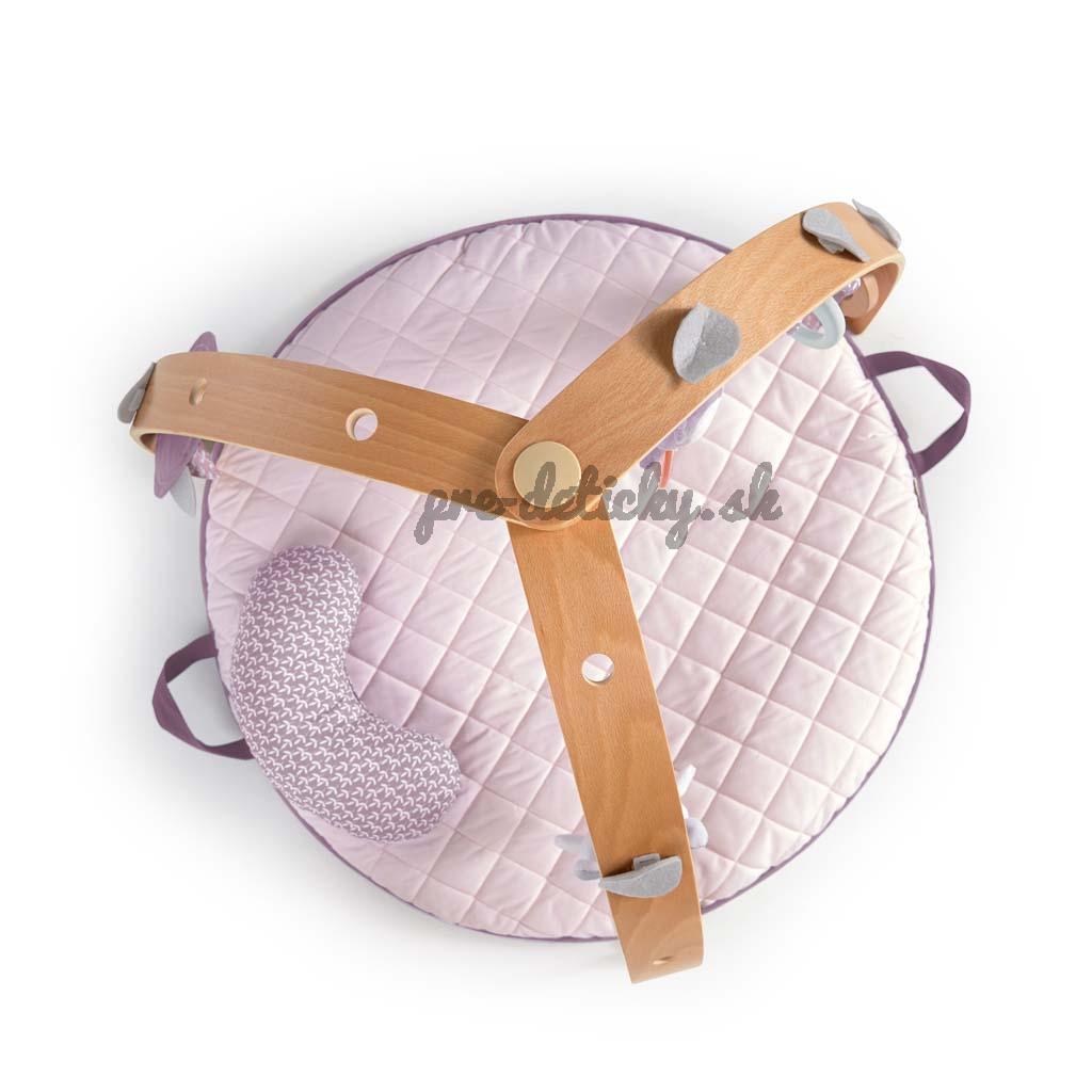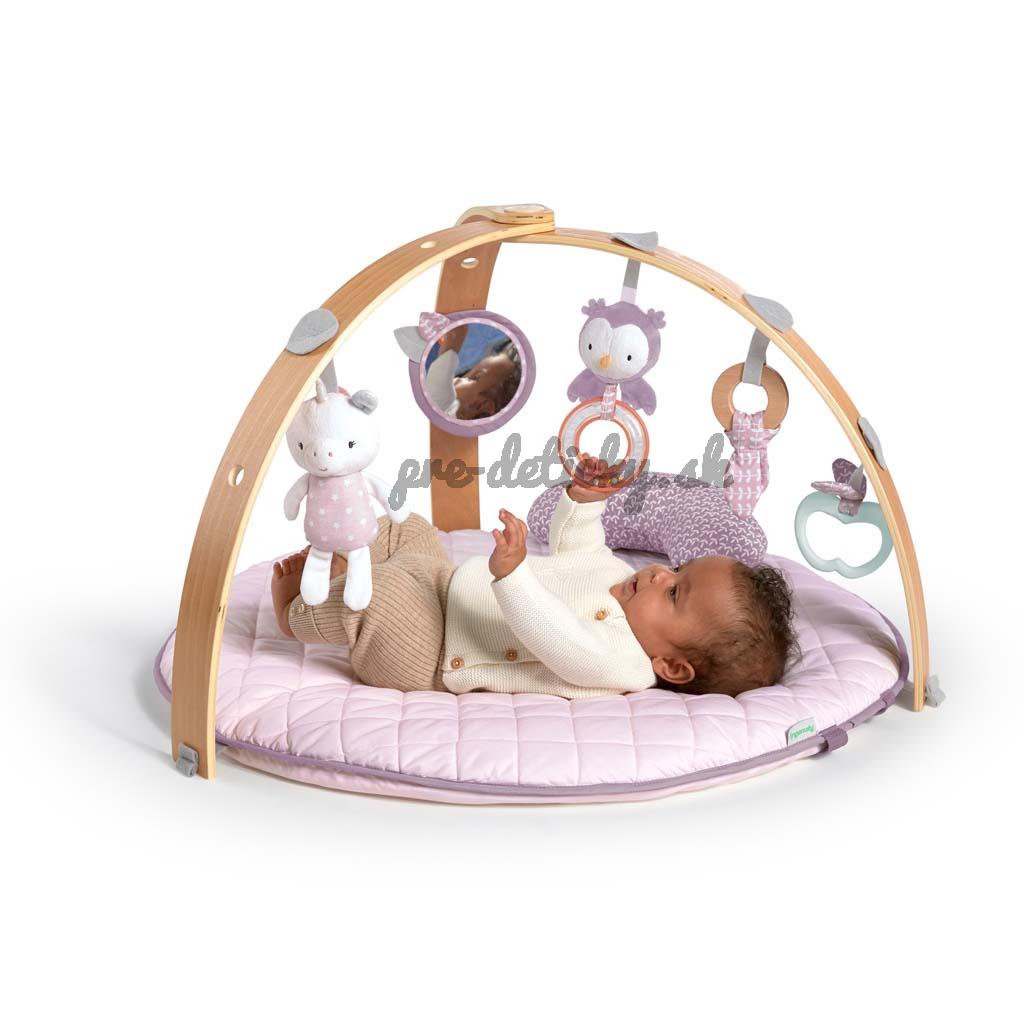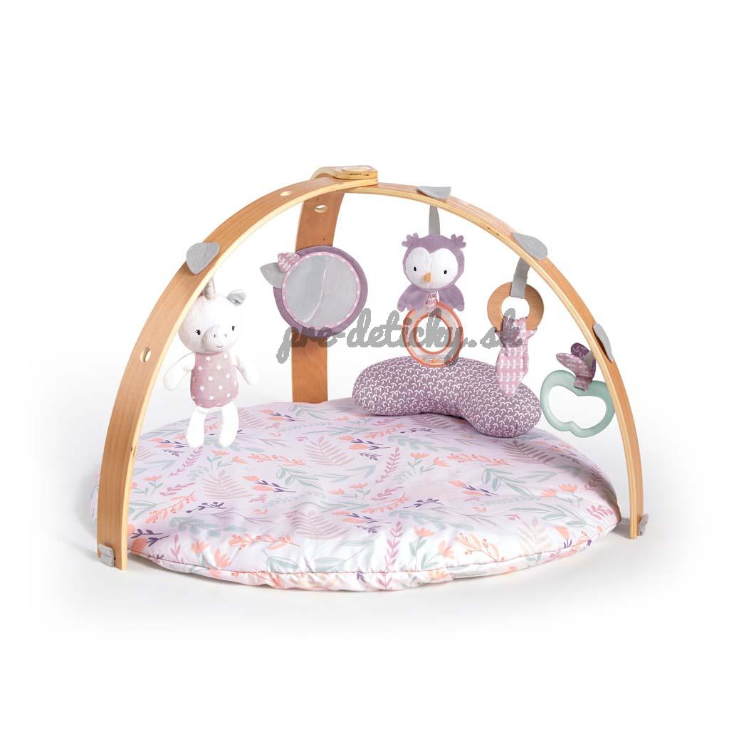 - obsahuje 6 odnímateľných hračiek na aktivity: plyšového jednorožca, hrkálku so sovou s korálkami, jabĺčko z prírodnej gumy, drevený krúžok, bezpečné zrkadielko a vankúšik na bruško