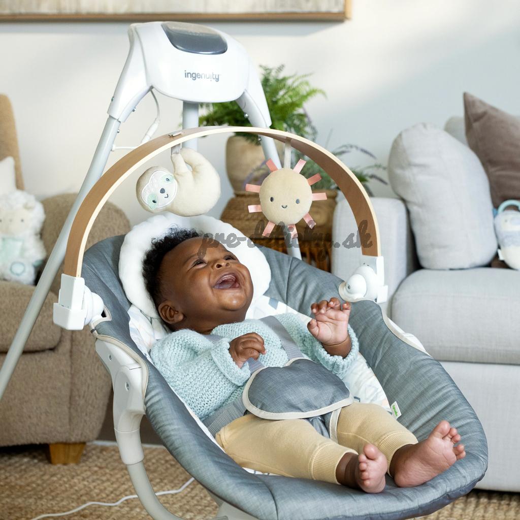 Zabavte dieťatko a zároveň doplňte výzdobu vášho domova s kompaktnou hojdačkou Ingenuity SimpleComfort – Parker.