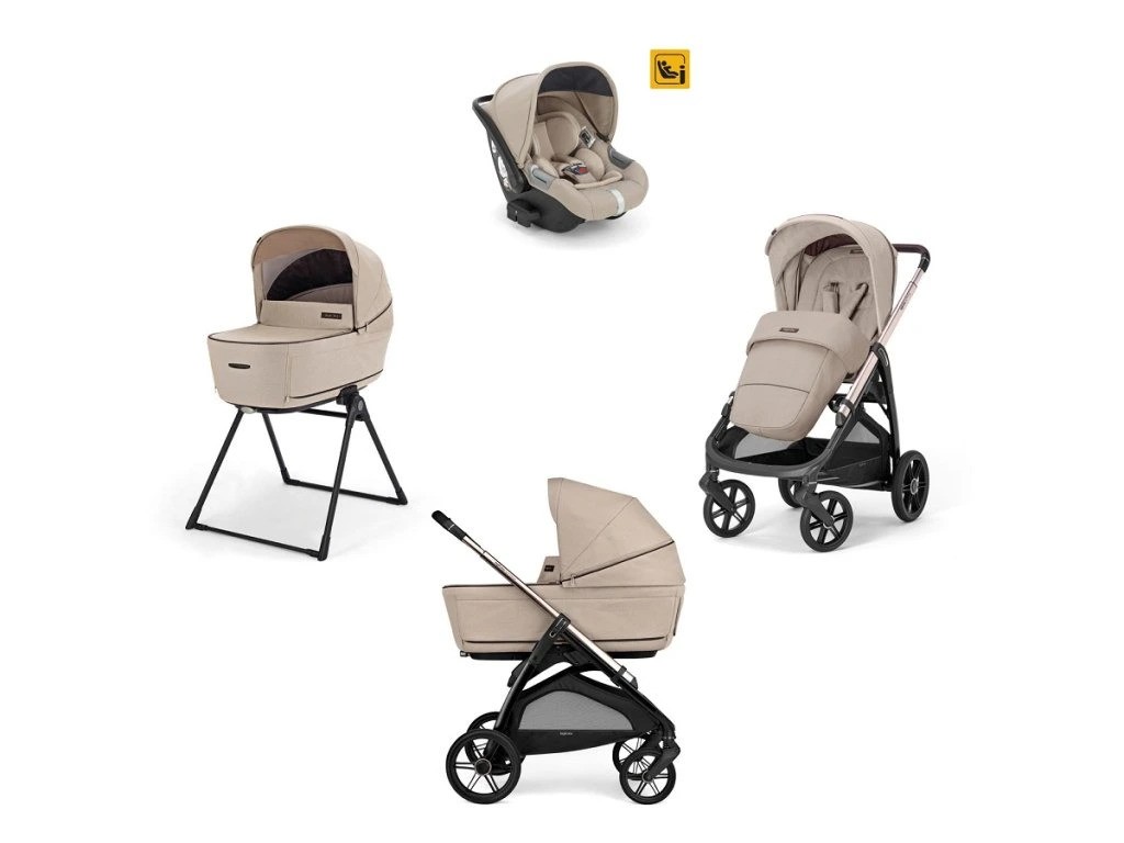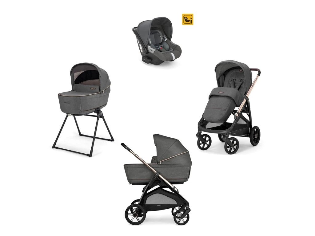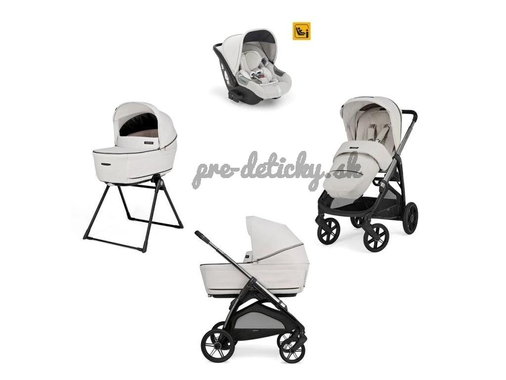 Kočík Aptica 4v1 Darwin sa skladá z: hlbokej vaničky, matraca, Welcome PadTM, stojana Stand UpTM, autosedačky Darwin i-Size, športovej sedačky All Season s búdkou a vložkou, nánožníka, košíka, držiaka pohárika a nového podvozku Aptica.