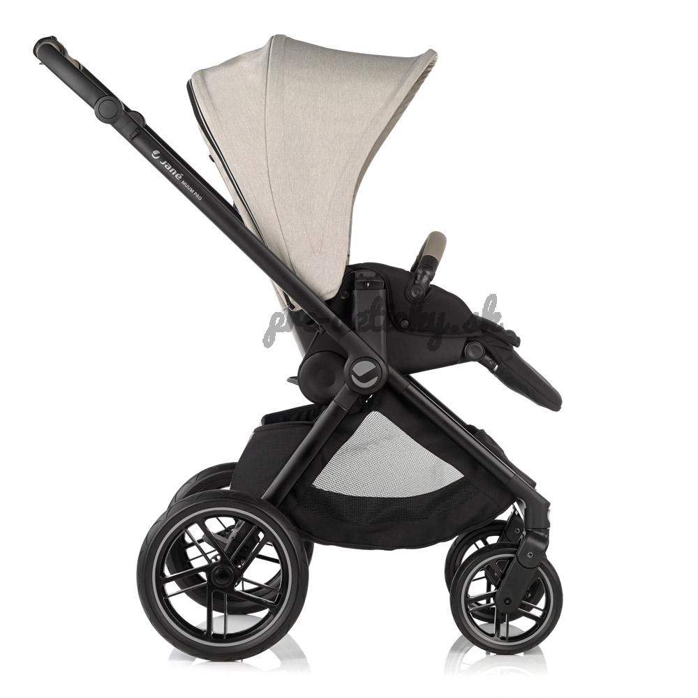 Kočík JANÉ MUUM Pro je univerzálny športový kočík, na konštrukciu ktorého si môžete nakliknúť bez adaptérov Micro Pro vaničku (skladaciu vaničku, nie je v cene), autosedačku KOOS iSize R1 (nie je v cene).