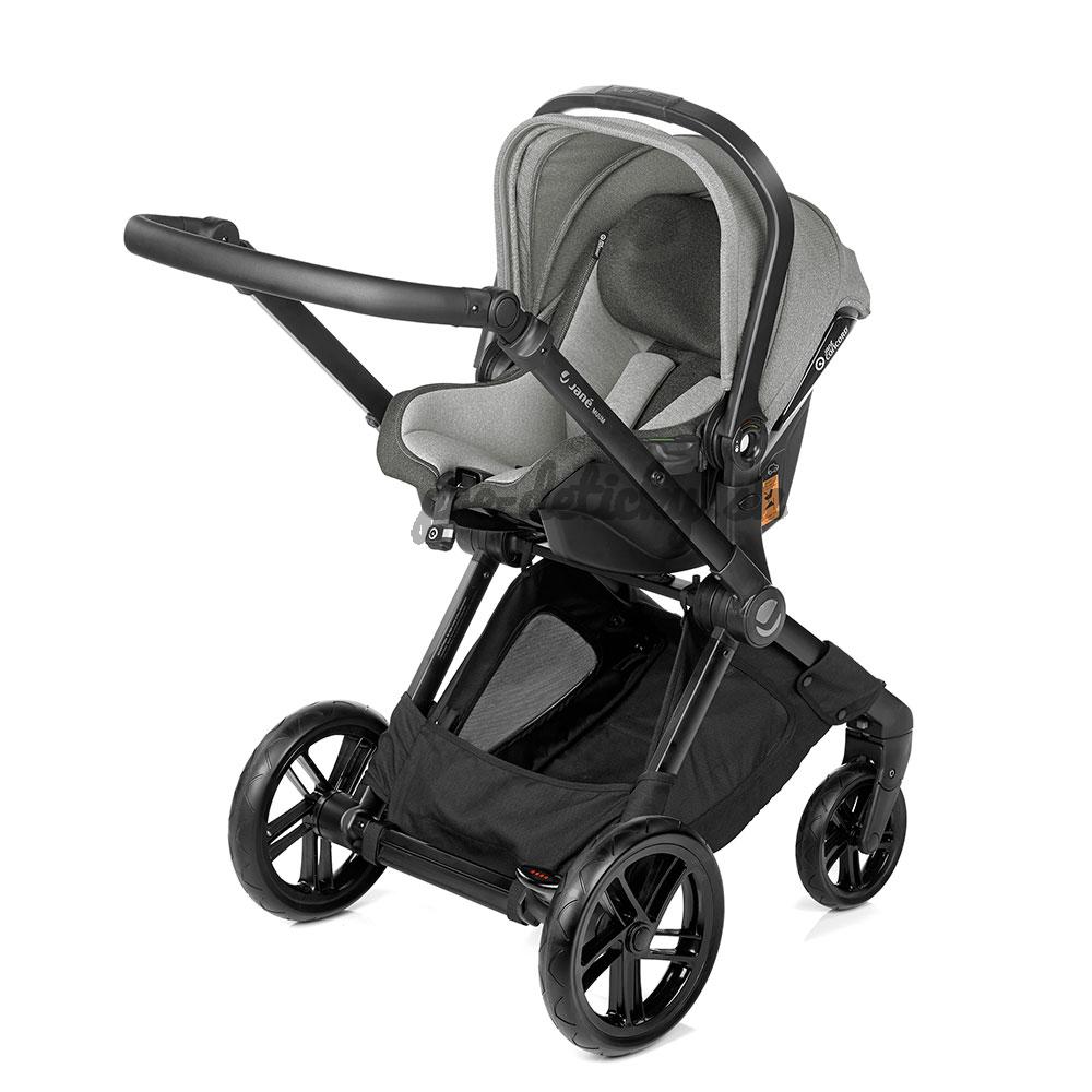 Výškovo nastaviteľná rúčka, má 7 polôh a ergonomický tvar. Nezávislé odpruženie prednej nápravy. Poťah je snímateľný a dá sa oprať. Strieška a vonkajší poťah je odolný voči vode a vetru. Nový priestrannejší nákupný košík. Praktický popruh na prenos v zloženom stave. Rozmery: 78/108x60x98cm Rozmery zloženého kočíka: 29x60x65cm Váha: konštrukcia s prednými kolesmi 6,4kg (7,9 kg aj so zadnými kolesami), športová sedačka 4,9 kg, vanička MicroBB 4,4 kg -obojstranná vnútorná vložka -vodeodolný -vetruodolný -priedušný -vysoko odolný voči škvrnám Technické vlastnosti: A Výškovo nastaviteľné držadlo do 7 polôh. Polohovateľná kĺbová rukoväť Soft Touch s ergonomickým tvarom. B Opierka chrbta s ergonomickým tvarom nastaviteľná do 3 polôh. C Snímateľný poťah, vhodný na pranie. D Systém Pro-fix, ktorý umožňuje nakliknutie nosičov (autovajíčko Koos, vanička Micro, autovanička Matrix Light 2). E Otočné predné kolieska s možnosťou aretácie. F Nová pedálová brzda. G Nový materiál, odnímateľné zadné kolieska. H Nová skladacia strieška. I Vystužené sedadlo s vnútornou vložkou a praktickým držadlom na prenášanie. J Snímateľné a otočné sedadlo (športovú časť môžte nakliknúť v oboch smeroch - tak, aby sa dieťatko dívalo na vás alebo na cestu). K Nezávislé odpruženie prednej nápravy. Isofixová platforma JANÉ na pripevnenie autosedačky JANE Koos iSize, JANÉ Koos iSize R1 a autovanička iMatrix do kotviaceho isofixového systému auta. Isofixová platforma prešla prísnymi testami ECE R129 i-Size European safety Standard, aby uľahčila rodičom s možnosťou Isofixu pripevniť túto základňu do auta, na ktorú sa iba veľmi jednoducho upevní autosedačka Koos iSize, alebo vanička - autosedačka iMatrix. Nastavenie uhlu integrovaným tlačítkom. Funkcia umožňuje ľahšie nastaviť uhol pre oddych dieťaťa, zvyšuje komfort JANE autosedačiek. Hlava dieťaťa je v trocha lepšej pozícii pre väčší komfort a bezpečnosť v prípade nárazu. Intuitívny a bezpečný kotviaci systém používajúci automatické zaisťovanie a sklápaciu isofixovú nohu. Isofixové odopínacie tlačídlo s bezpečnostnou zápatkou, ktorá chráni pred nechceným odistením. Indikátor správnej inštalácie. Antirotačná noha s výškovým nastavením.