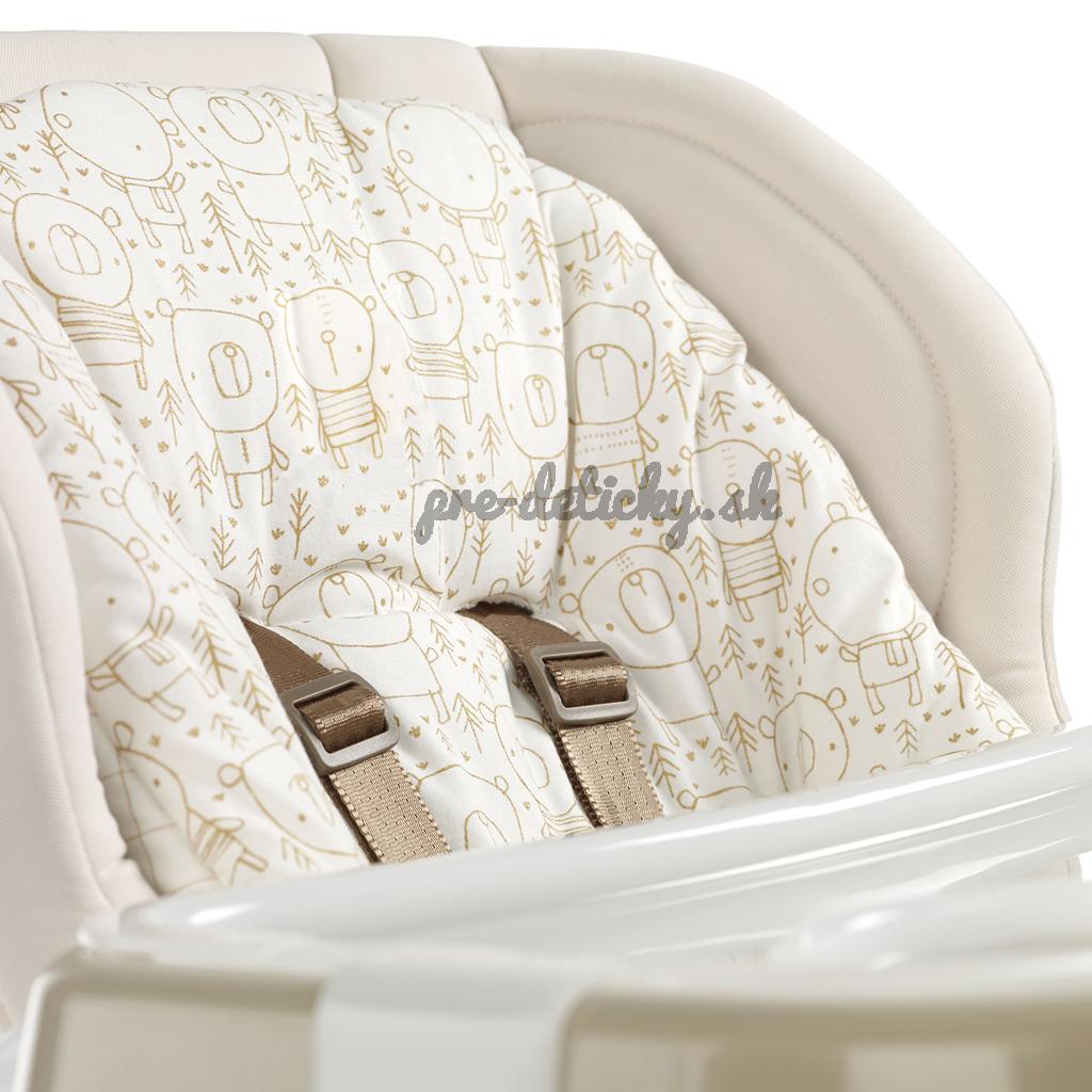 Dokonalá vysoká stolička vhodná ako pre vaše novonarodené bábätko, tak i pre batoľa a to vďaka nastaviteľnej chrbtovej opierke, ktorú možno polohovať až do roviny. Vaša ratolesť bude mať pohodlie ako v hlbokej vaničke.