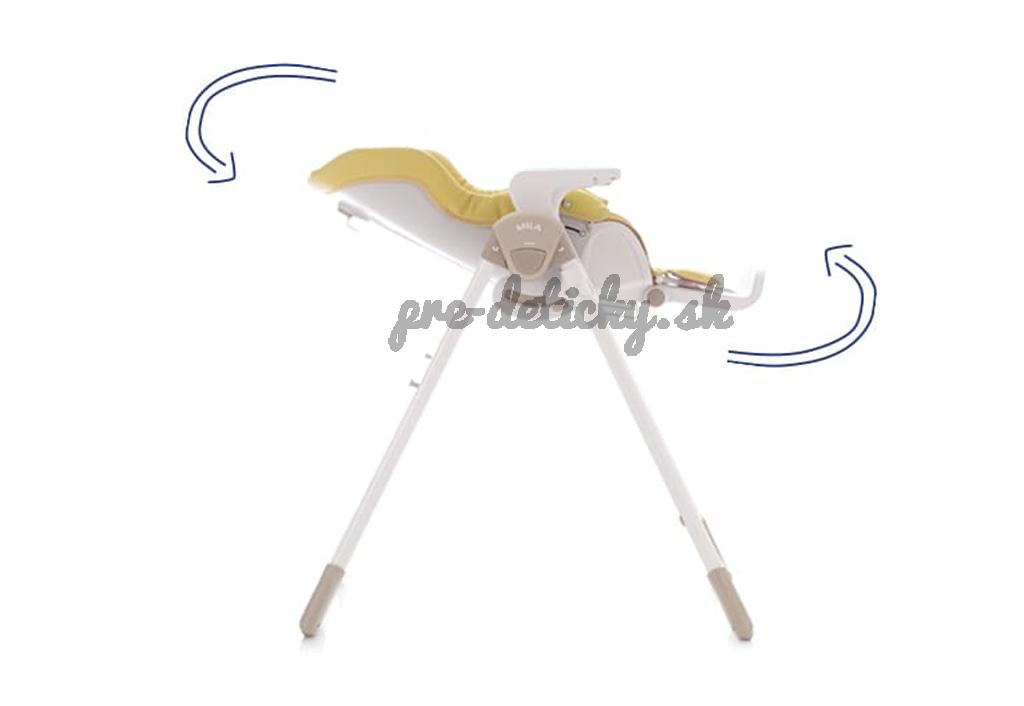 - Možnosť regulácie výšky vysokej stoličky, vysoká stolička môže byť nastavená do niekoľkých pozíciu výšky