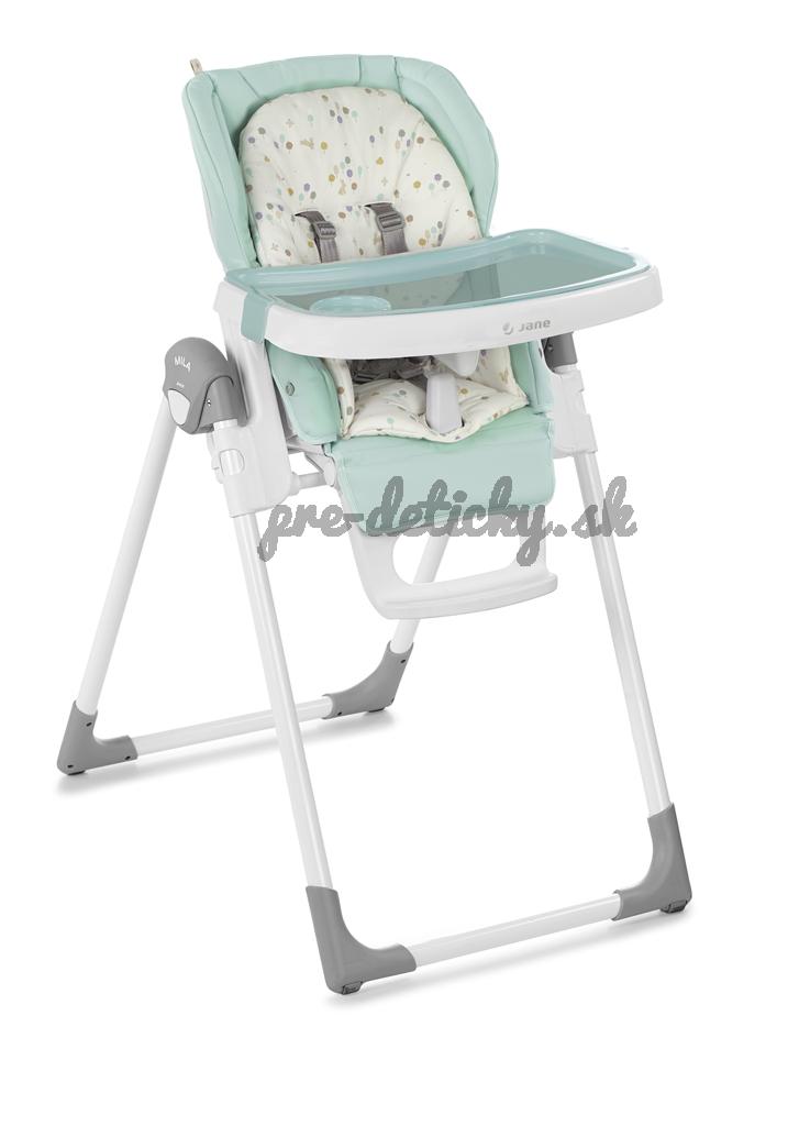 - možnosť regulácie výšky vysokej stoličky, vysoká stolička môže byť nastavená do niekoľkých pozíc výšky