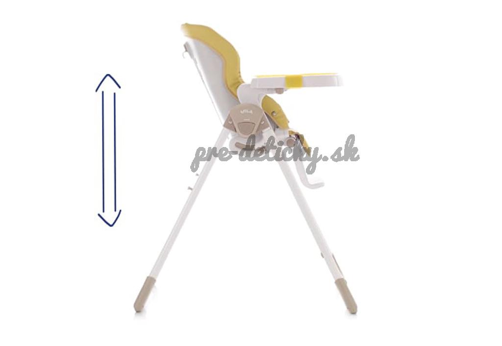 - možnosť regulácie výšky vysokej stoličky, vysoká stolička môže byť nastavená do niekoľkých pozíc výšky