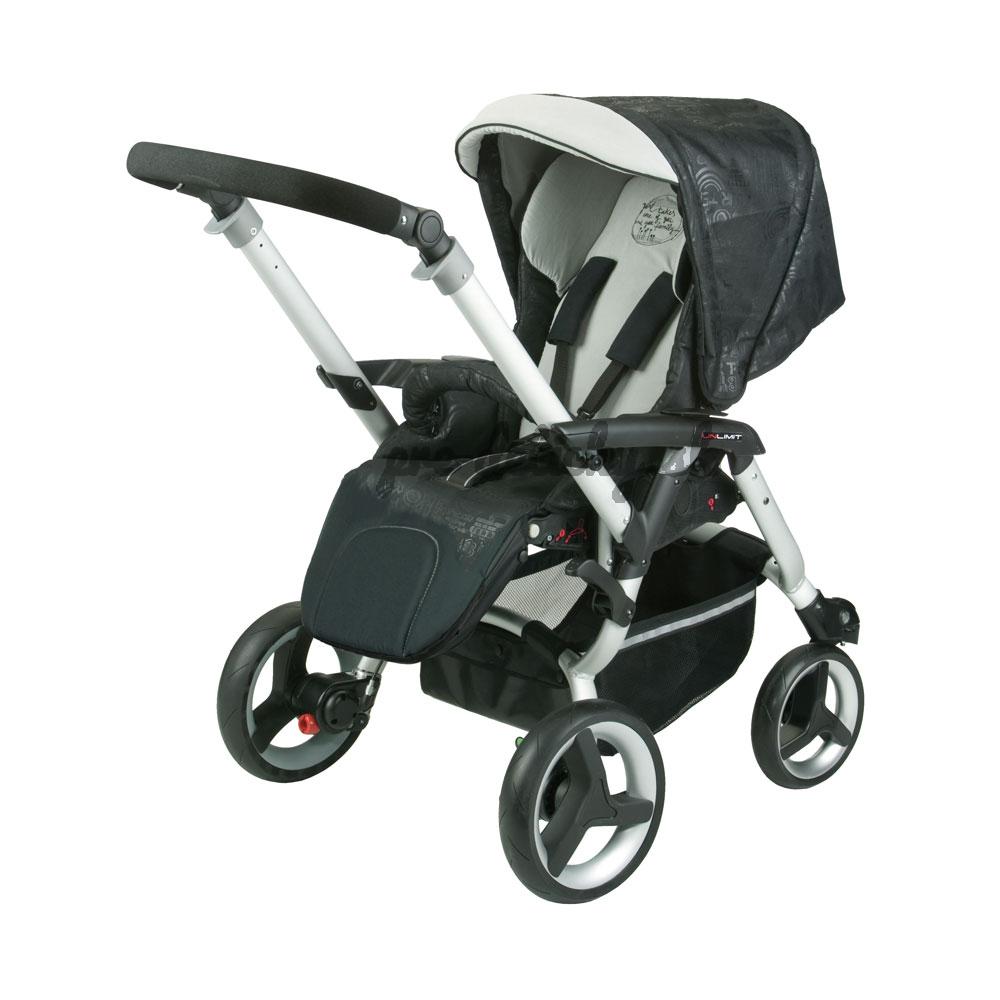 Kočík Unlimit predstavuje nový spôsob vychádzky s dieťaťom. Príjemne a ľahko sa ovláda, je pohyblivý a ľahký. Nový UNLIMIT je vybavený štyrmi kolieskami s veľkým priemerom, ktoré umožňujú pohodlnú jazdu v každom teréne. Konštrukcia je vyrobená z vysoko odolnej eloxovanej ocele a jej zadná časť je vytvarovaná do obráteného písmena C. Tento inovatívny tvar výrazne uľahčuje tlačenie kočíka, vytvára voľné miesto pre nohy a tým umožňuje voľnú a ľahkú chôdzu.