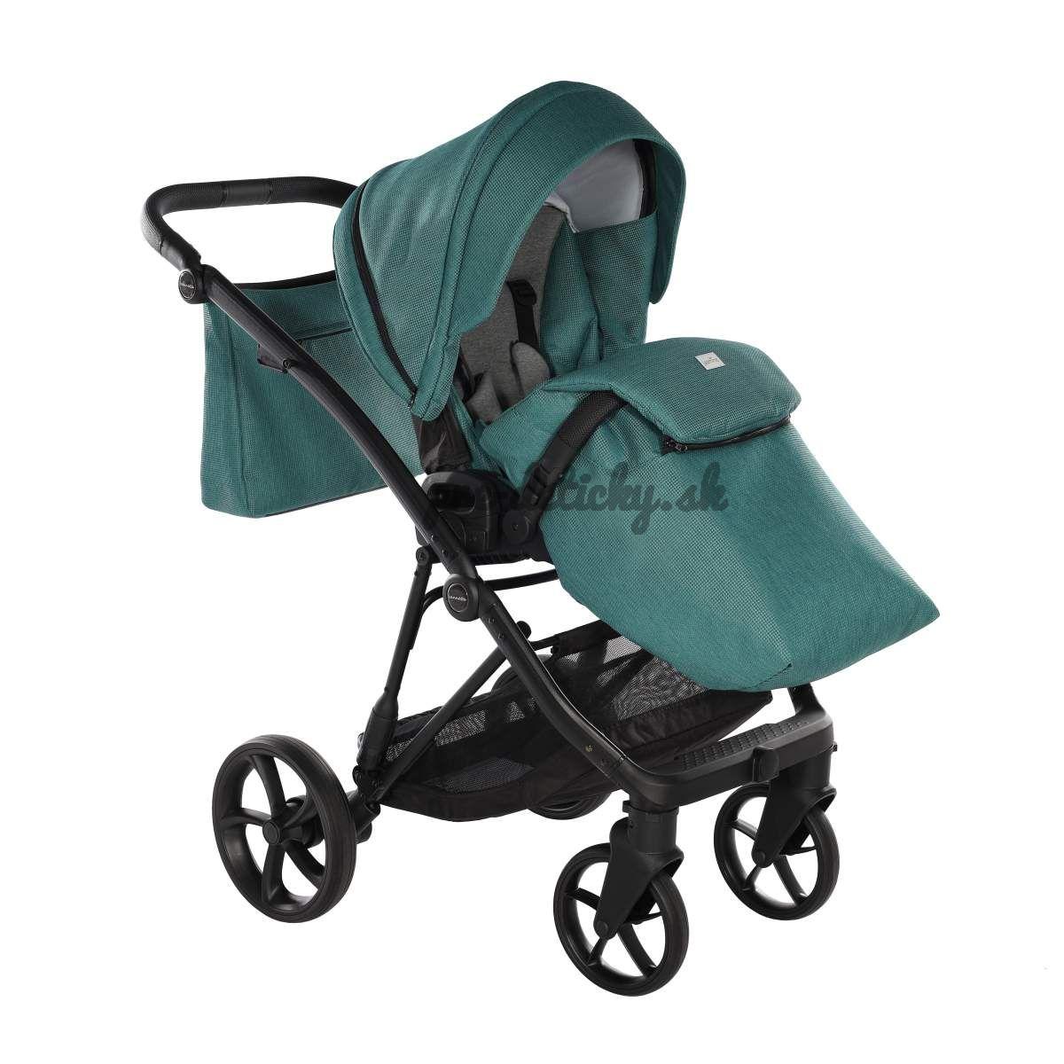 - Použité moderné látky: paropriepustné, pre udržanie ideálneho klímy v kočíku + eko kože