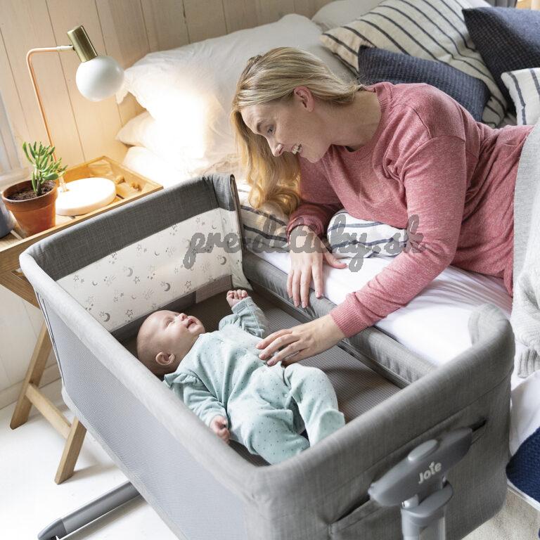 Spokojný spánok - postieľku Roomie upevníte vedľa svojej posteli a nestratíte tak svoje lôžko, ani blízkosť k vášmu dieťaťu. Vďaka Roomie si uľahčíte nočné kŕmenie i uspávanie a zároveň si doprajete maximum možného spánku.