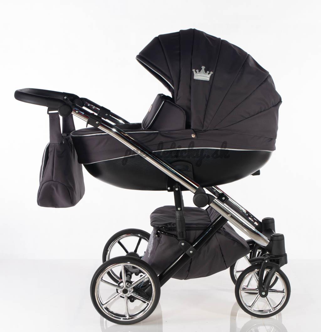 - vnútro kočíka tvorí čalúnenie vo farbe kočíka z kvalitnej bavlny s vyberateľným bavlneným matracom,