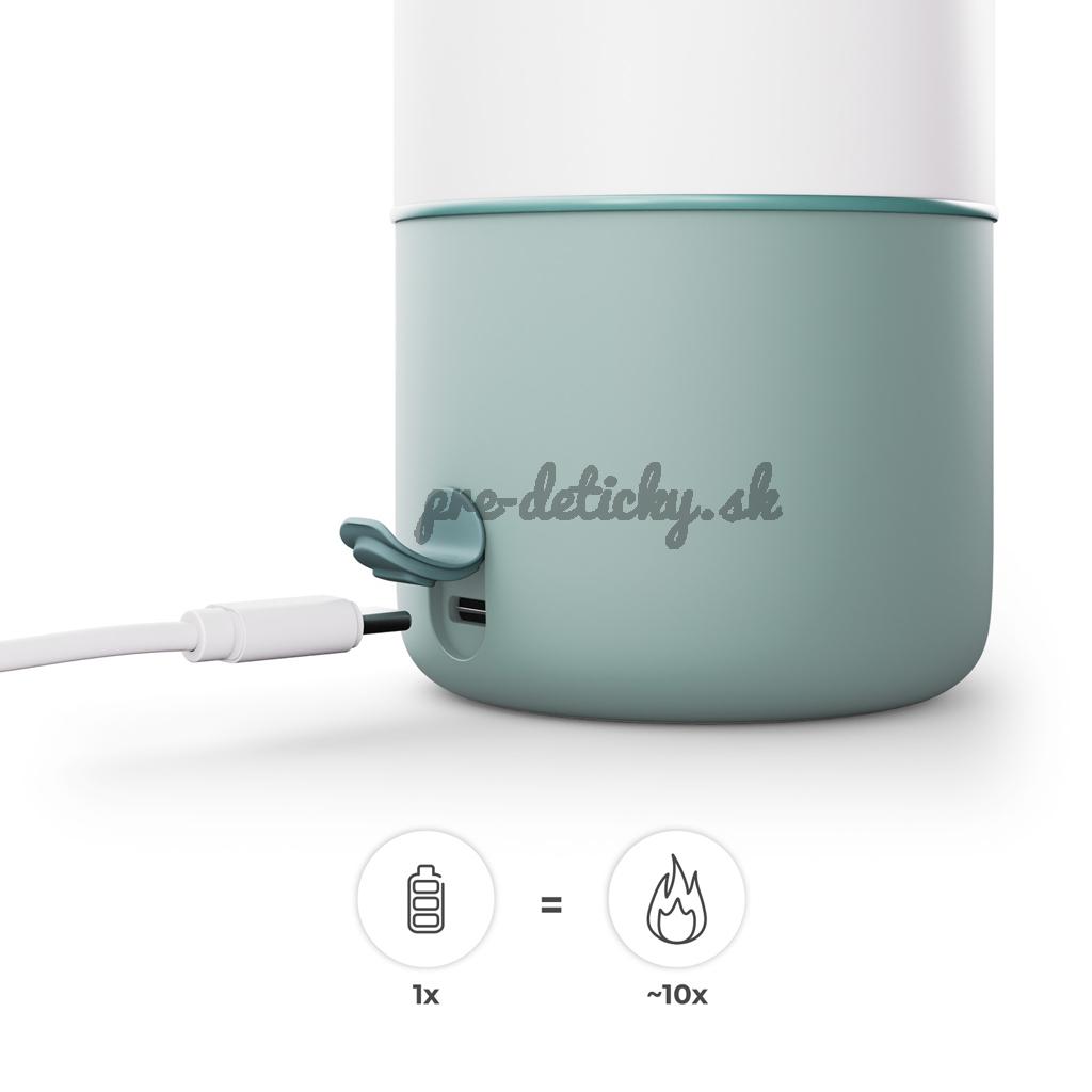 Jedno plné nabitie vystačí na celý deň - až 10 cyklov ohrevu bez prístupu k elektrickej zásuvke, zatiaľ čo veľká kapacita uľahčuje plánovanie kŕmenia a prípravu niekoľkých porcií nápoja.