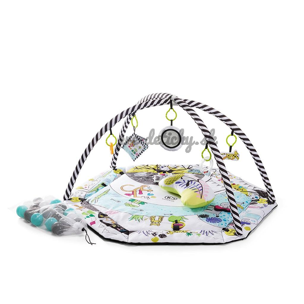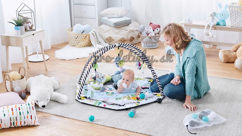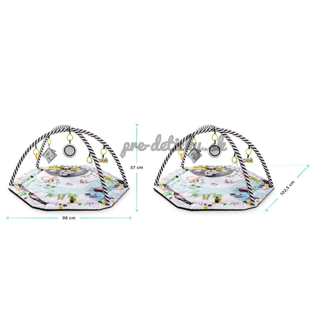 Hracia deka pre deti od narodenia. V sade sa nachádza 7 hračiek s rôznymi estetickými a kognitívnymi vlastnosťami: zrkadlo, šuštiaca kniha, 2 hryzadlá, pískací tiger, hrkálka a zvoniaci sloník.