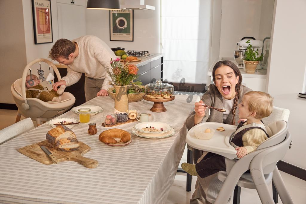 FINI UP prirodzene kopíruje rytmus domova: od prvých zdriemnutí v poloľahu, cez obdobie zavádzania príkrmov, až po každodenné sedenie pri stole, keď chce dieťa byť nablízku dianiu v kuchyni a jedálni. Rodičia oceňujú, že namiesto výmeny nábytku každých pár mesiacov stačí rýchla zmena nastavenia – bez použitia náradia – a stolička je pripravená na ďalšiu etapu.
