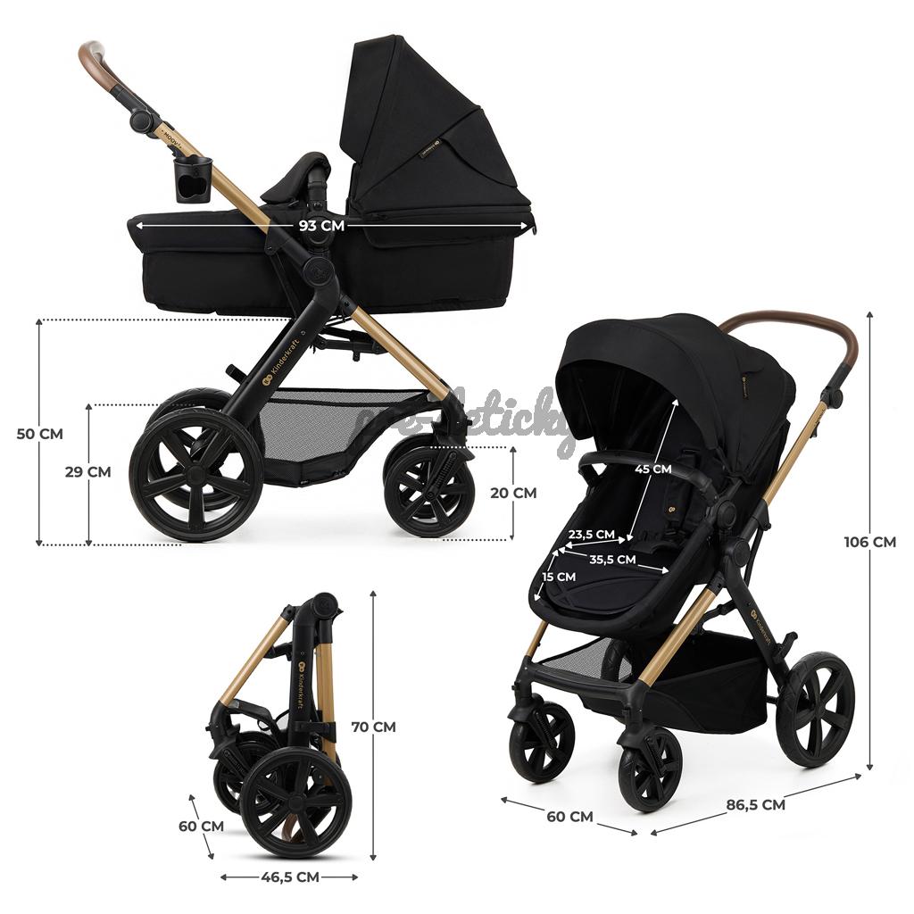 KINDERKRAFT Kočík kombinovaný Moov 2 3v1 Pure Black - penové kolesá