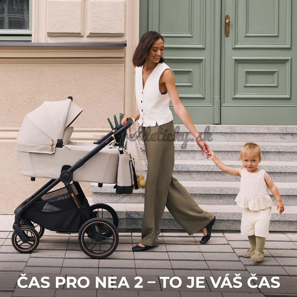 Toto je NEA 2 - multifunkčný kočík 2v1, ktorý vzbudí váš záujem kompaktným dizajnom a kolesami do každého terénu. Veľké kolesá vám bez väčších problémov umožnia prekonať vysoké obrubníky, či nerovné mestské chodníky. NEA 2 je odpoveďou na potreby moderných rodičov, ktorí hľadajú stabilný, pevný, no napriek tomu dobre ovládateľný kočík. Okienko na strieške vám umožní jednoduchú kontrolu, či batoľa počas prechádzky zaspalo, a keď sa náhodou stane, že dieťa kočík zašpiní - poťah na pranie ľahko stiahnete. Brzda STOP & RIDE umožňuje ľahké zaistenie a odistenie kočíka a jednoduchý systém skladania a praktické riešenia ako sú SELF STANDING alebo AUTO LOCK uľahčujú prepravu a skladovanie.