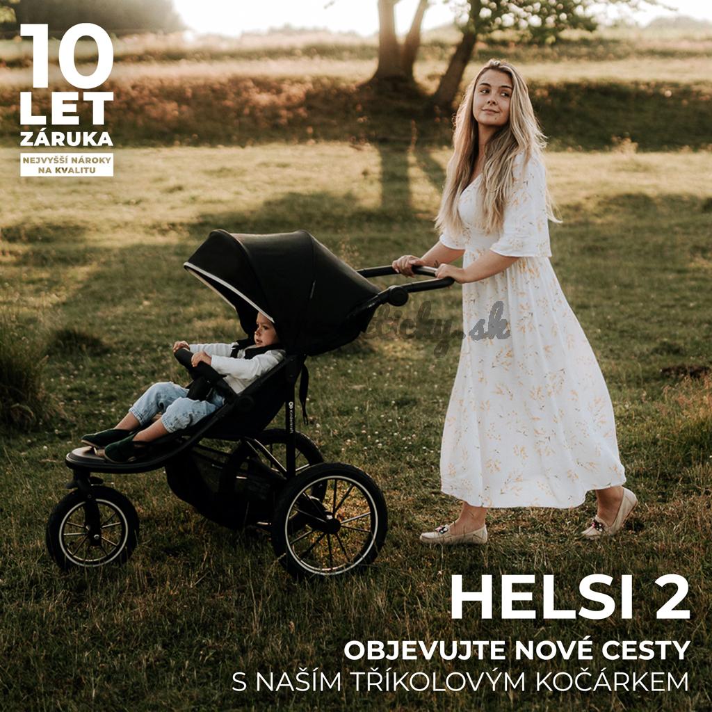HELSI 2 je terénny kočík pre ľudí, ktorí milujú aktivitu na čerstvom vzduchu. Odolný rám a trojkolesová konštrukcia zaisťujú bezpečnosť detí približne do 5 rokov. S HELSI 2 budete môcť aktívne tráviť čas vonku spolu so svojím dieťaťom.