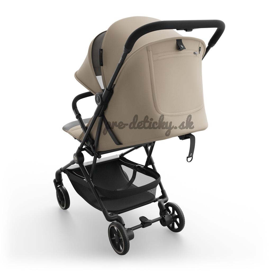 Mechanizmus skladanie jednou rukou umožňuje rýchle zloženie kočíka aj v dynamických situáciách. Po zložení kočík samostatne stojí a jeho rozmery (51 × 43 × 21 cm) zodpovedajú štandardom príručnej batožiny, čo výrazne zvyšuje komfort cestovania.