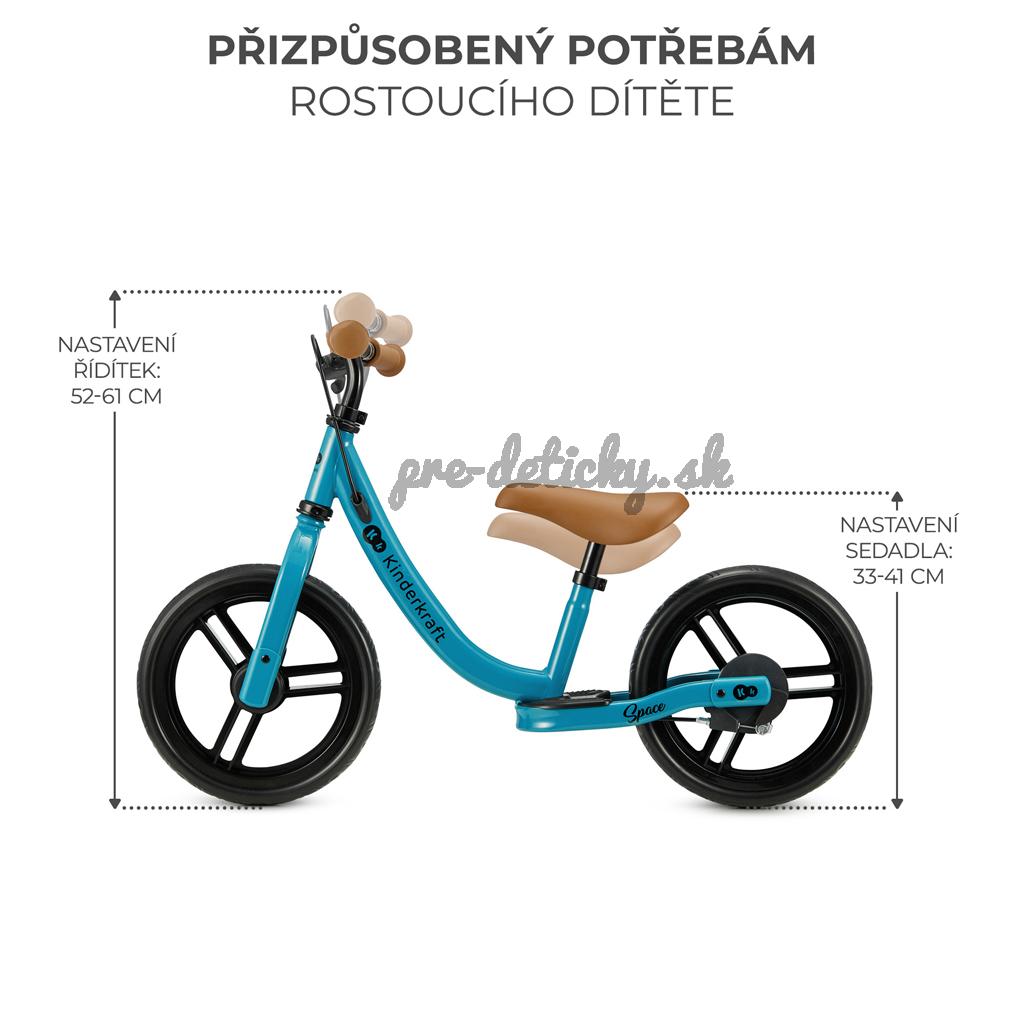 Vyvažovací bicykel Kinderkraft SPACE je výrobok, ktorý u dieťaťa rozvíja schopnosť udržiavať rovnováhu. Vďaka nemu dieťa rozvíja svoje motorické schopnosti a pripravuje sa na to, aby sa naučilo jazdiť na klasickom bicykli. Model SPACE je navyše vybavený ručnou brzdou, ktorá zvyšuje bezpečnosť dieťaťa. Bicykel je tiež veľmi ľahký a veľké kolesá z neprepichnuteľnej peny uľahčujú osvojenie udržania rovnováhy. Namontované opierky nôh navyše umožňujú podopretie nôh pri jazde, čo zabraňuje ich držaniu vo vzduchu.