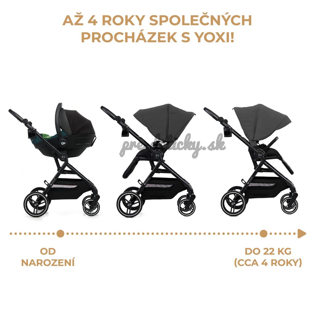 Športový kočík YOXI je určený pre deti od narodenia do približne 4 rokov. Počas prechádzok vás bude sprevádzať pohodlný kočík, ktorý sa dá pripnúť smerom dopredu alebo dozadu k rodičovi. YOXI umožňuje vytvoriť TRAVEL SYSTEM vďaka priloženým adaptérom.