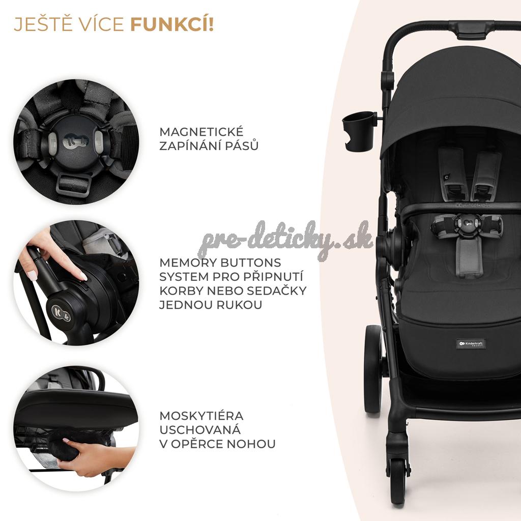 Sedadlo kočíka sa dá pripnúť smerom dopredu alebo dozadu smeru jazdy - vaše dieťatko tak môže sledovať svet okolo seba alebo sa sústrediť na vás, ak ešte nie je pripravené na jazdu v smere jazdy. Kočík sa dá zložiť spolu s pripevneným sedadlom, čo výrazne uľahčuje cestovanie.