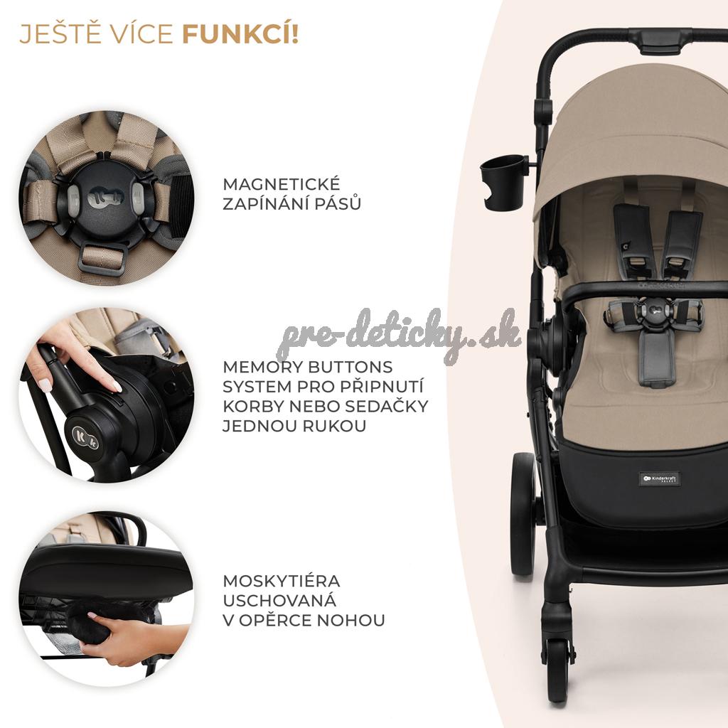 Sedadlo kočíka sa dá pripnúť smerom dopredu alebo dozadu smeru jazdy - vaše dieťatko tak môže sledovať svet okolo seba alebo sa sústrediť na vás, ak ešte nie je pripravené na jazdu v smere jazdy. Kočík sa dá zložiť spolu s pripevneným sedadlom, čo výrazne uľahčuje cestovanie.