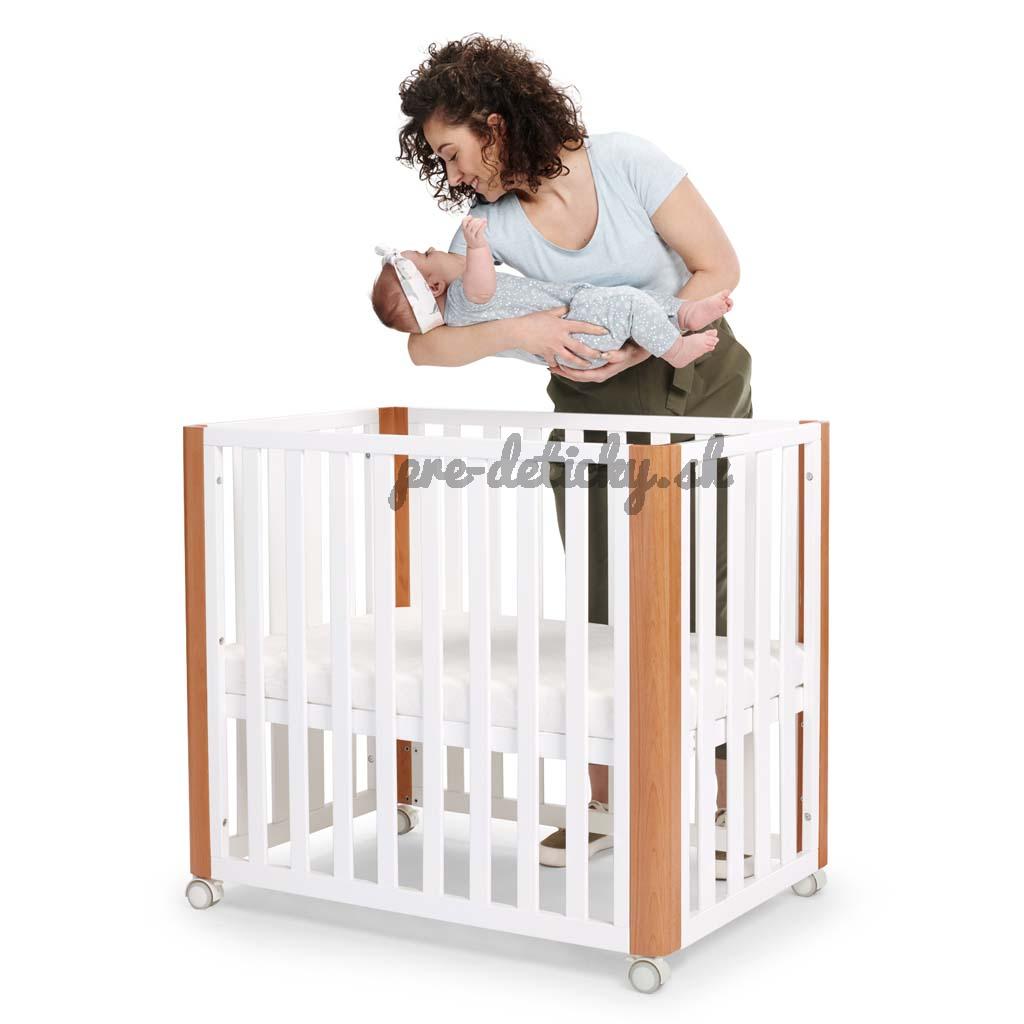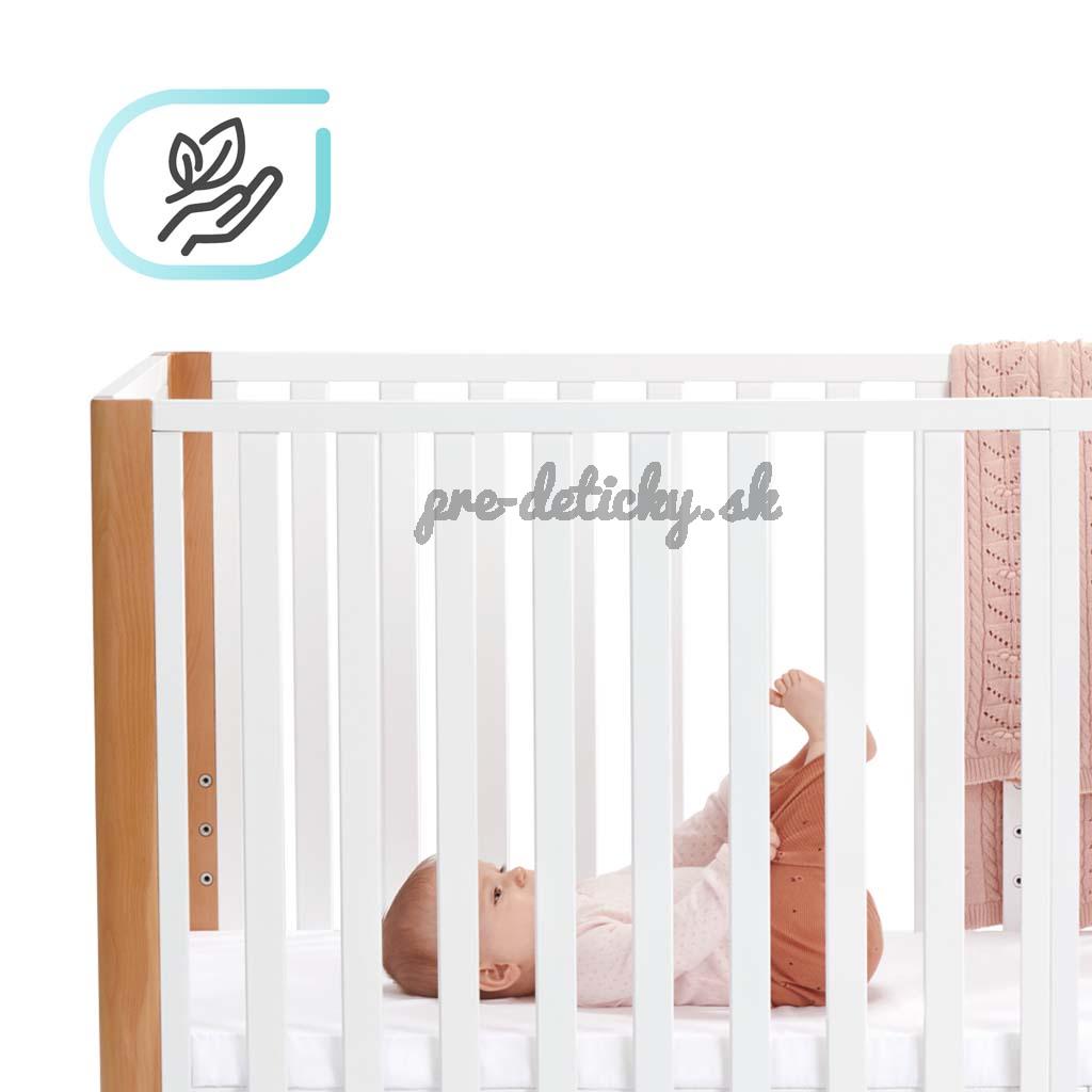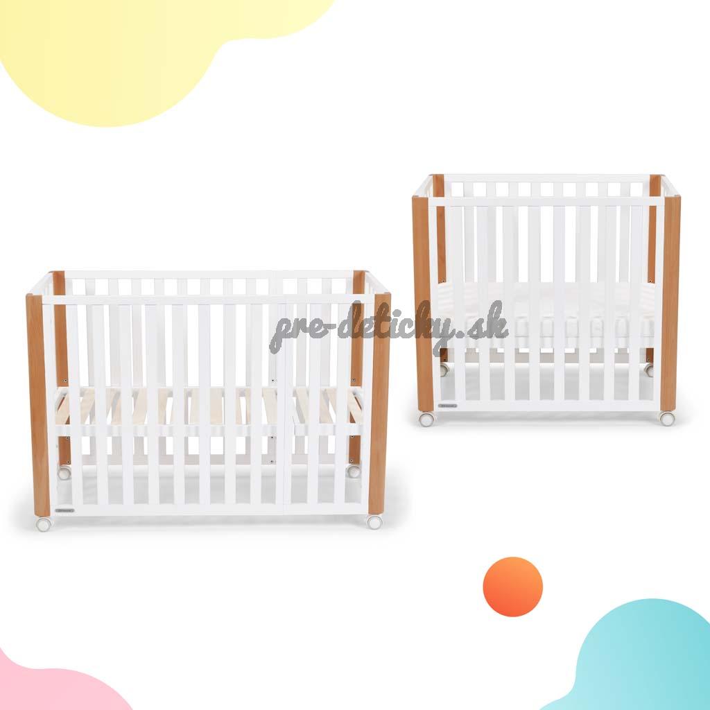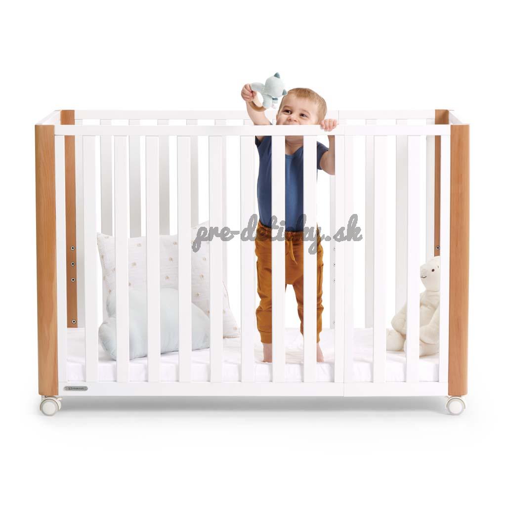 - detskú postieľku je možné zväčšiť pomocou ďalších prvkov. Potom vzniká detská postieľka s klasickými rozmermi 120 x 60 cm, čo uľahčuje dokúpenie matraca a obliečky.