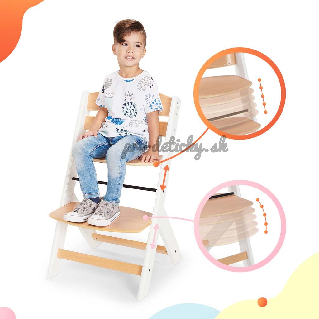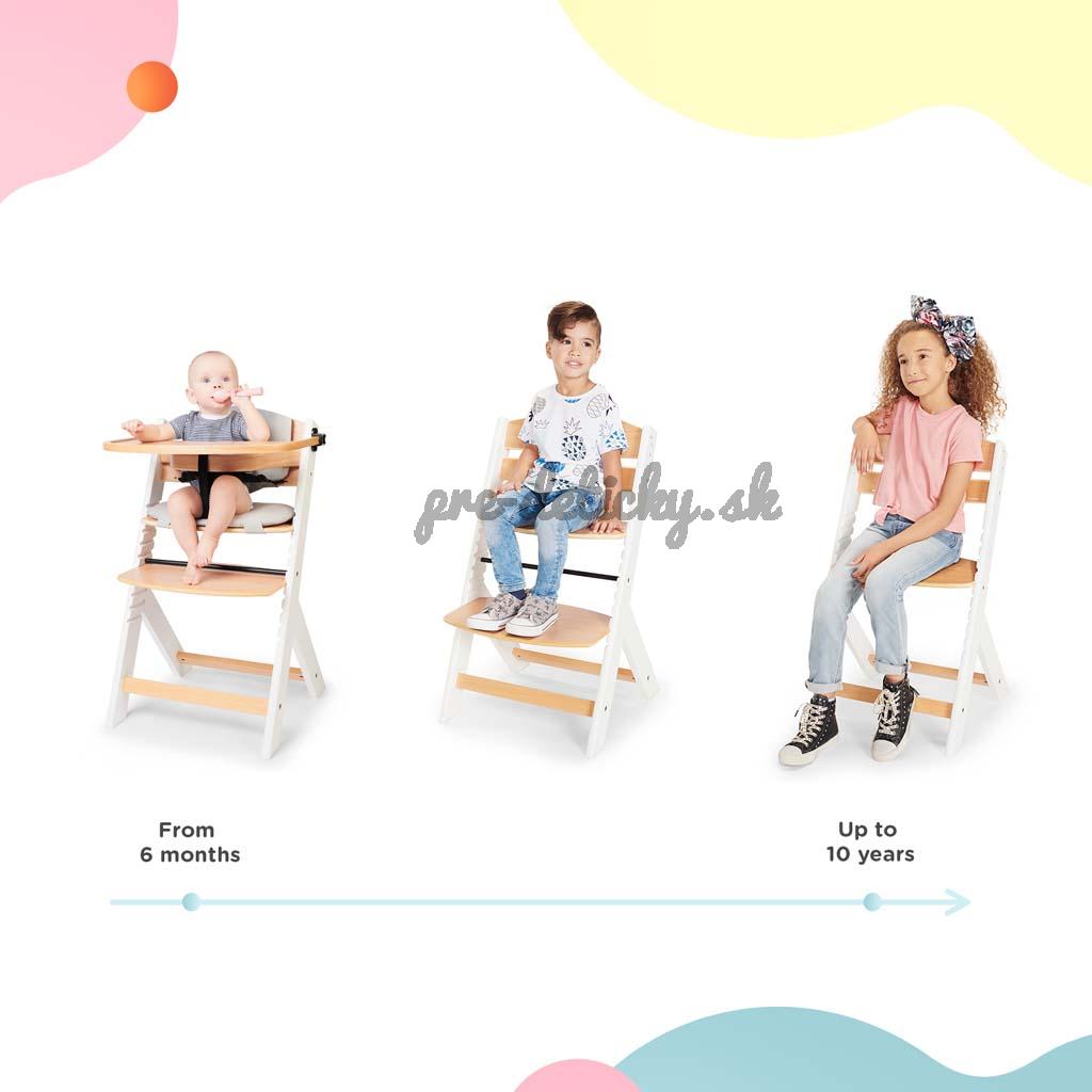 Existuje vôbec stolička na kŕmenie, ktorá bude slúžiť dieťaťu niekoľko rokov? Áno! Práve taká je stolička ENOCK. Enock nie je len bezpečná a praktická vysoká stolička na kŕmenie, ale aj ergonomická stolička pre staršie deti. Ako je to možné? Výška sedadla a opierka nôh sú nastaviteľné, vďaka čomu je jednoduchšie prispôsobiť stoličku veku a výške dieťaťa. ENOCK je navrhnutá pre vašu rodinu – je to stolička, ktorej dizajn bude ladiť aj s interiérom vášho domu alebo bytu. Okrem toho ju jednoducho prispôsobíte stolu v kuchyni, jedálni alebo obývacej izbe. Vďaka profilovanej chrbtovej opierke bude dieťa udržiavať správnu polohu pri jedle, a bude mať možnosť tráviť čas pri stole spoločne s dospelými. Pohodlná vložka priložená k stoličke zaručí pohodlie počas jedla a zábavy.