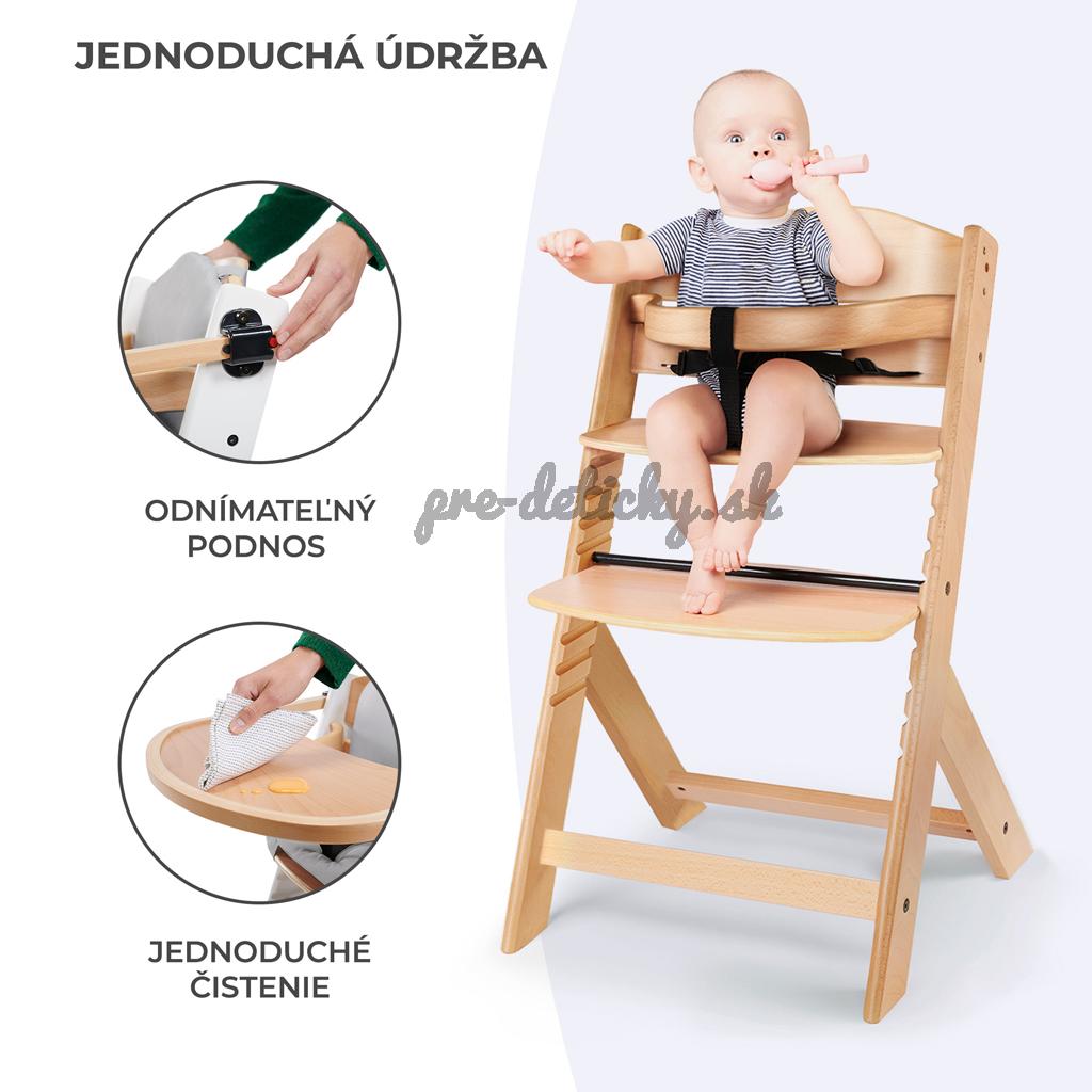 - odnímateľná tácka a pásy umožňujú prispôsobiť vysokú stoličku veku dieťaťa.