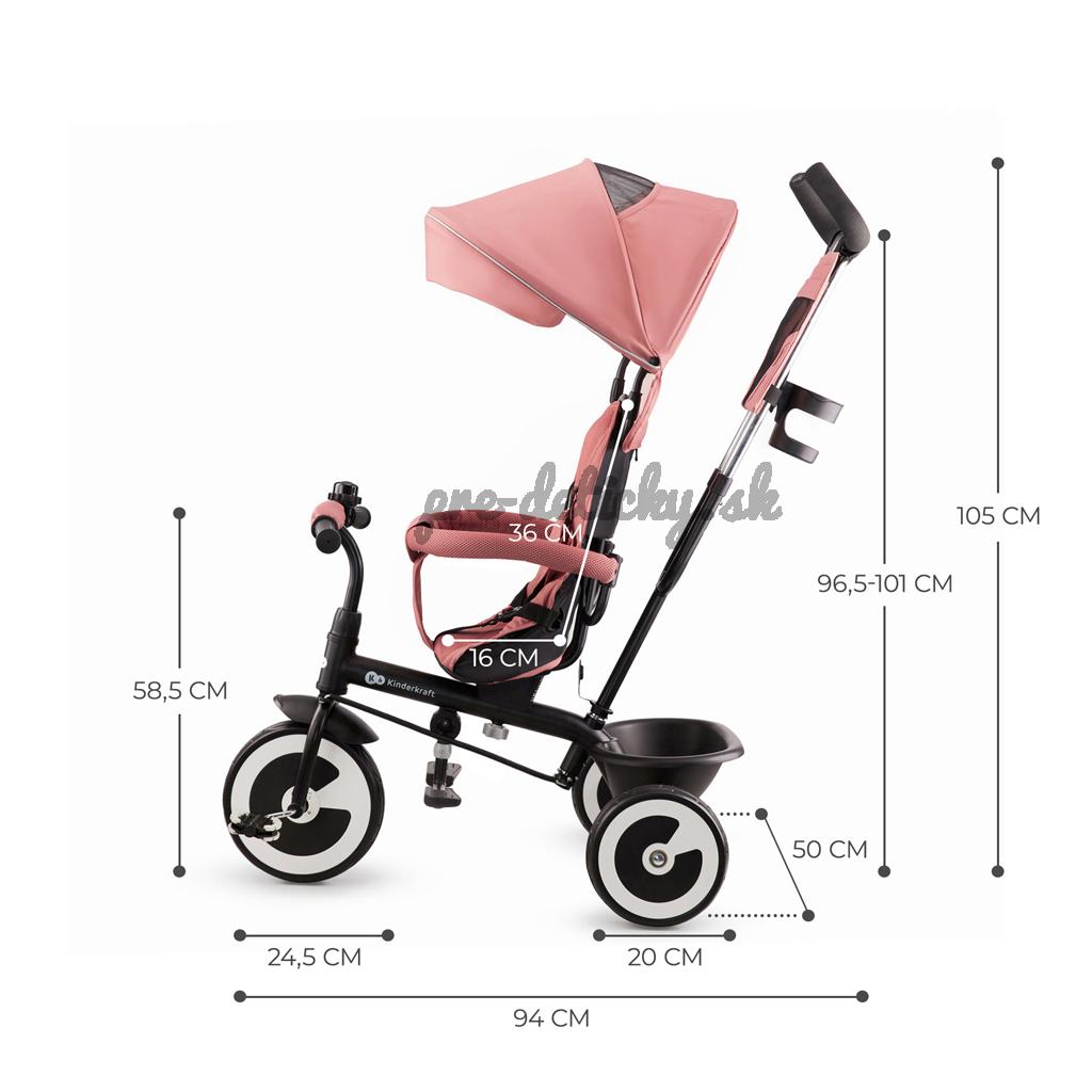 Aby sa trojkolka ľahšie ovládala rodičom a opatrovateľom detí, má ASTON nastaviteľnú rodičovskú rukoväť. Jej výšku si môžete za pár okamihov nastaviť podľa svojej výšky bez použitia akéhokoľvek náradia.