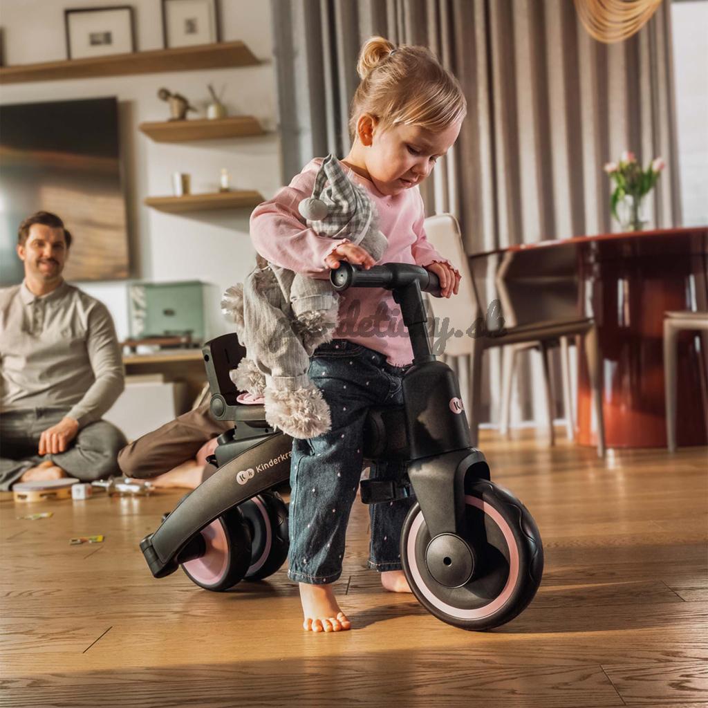 Kinderkraft JAZZ 3 kombinuje trojkolku vedenú rodičom s fázou učenia samostatnej jazdy. Vďaka 6 režimom používania sa model prispôsobuje vývoju dieťaťa - od jazdy proti smeru s kontrolou rodiča, cez samostatné šliapanie až po režim odrážadla. Trojkolka zodpovedá potrebám rodín v rôznych etapách vývoja dieťaťa.