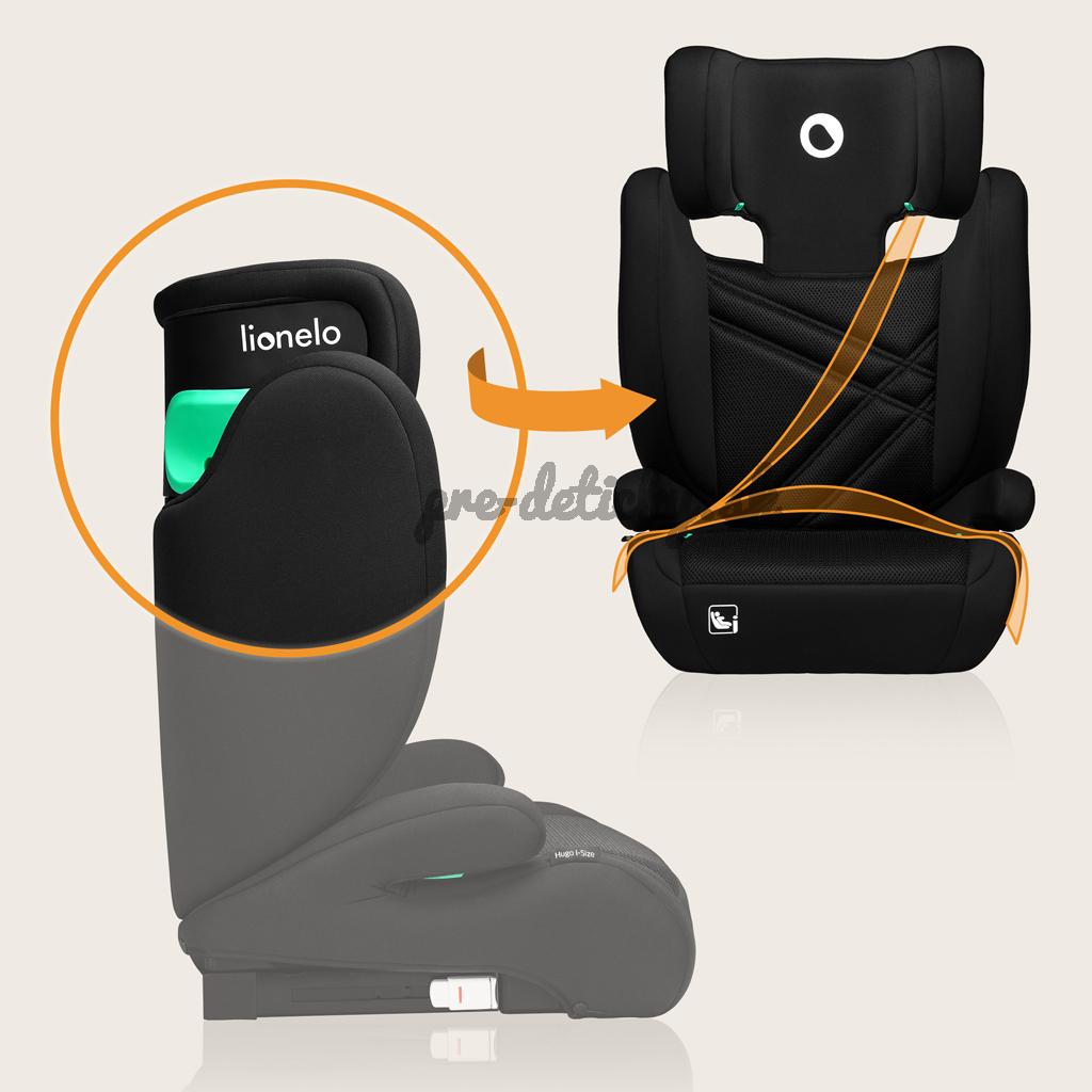 Lionelo Hugo i-Size je autosedačka, ktorá rastie spoločne s dieťaťom - je určená pre výškovú skupinu 100-150 cm, teda asi od 4 do 12 rokov. Špeciálne bezpečnostné systémy, v súlade s prísnou normou R129, zaisťujú najvyšší štandard prevedenia výrobku. Hugo i-Size sa vyznačuje univerzálnym spôsobom montáže – je možné používať ako systém ISOFIX, tak aj samotné bezpečnostné autopásy. Pre väčšiu bezpečnosť má autosedačka pokročilú bočnú ochranu a zosilnenú opierku hlavy s penou Memory Foam. Nastavenie opierky hlavy do ôsmich polôh a široké sedadlo umožňujú prispôsobiť autosedačku meniacim sa potrebám malého cestujúceho.