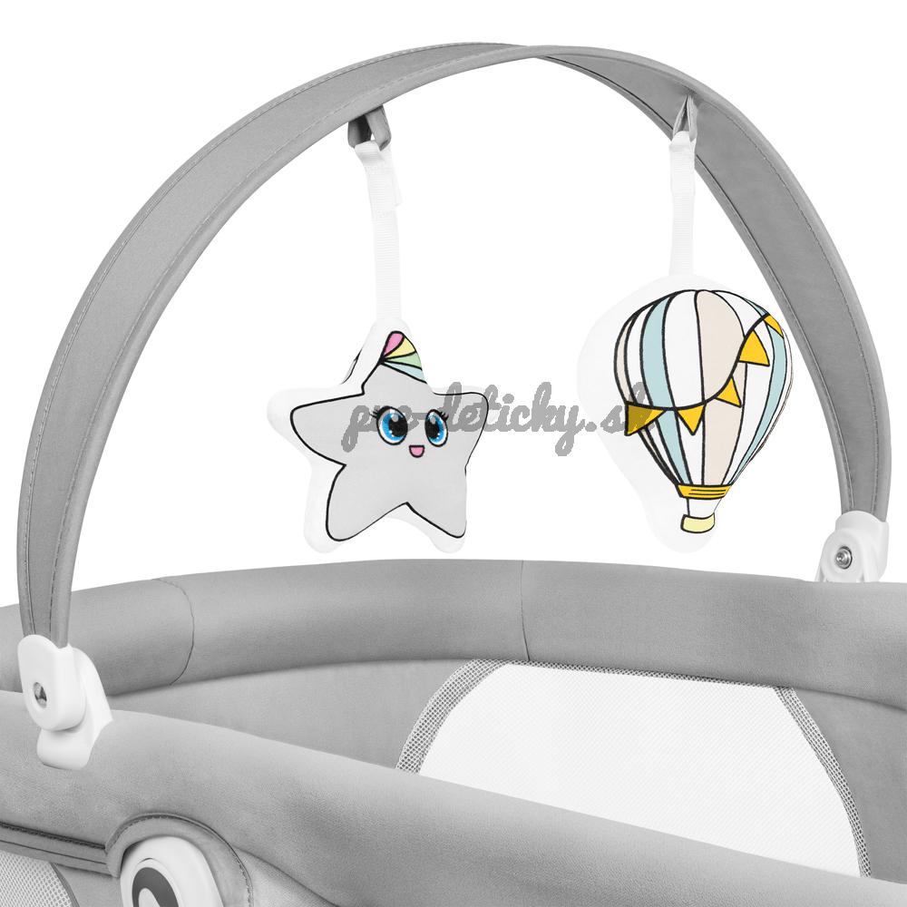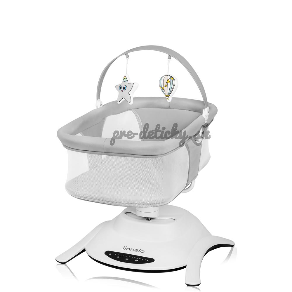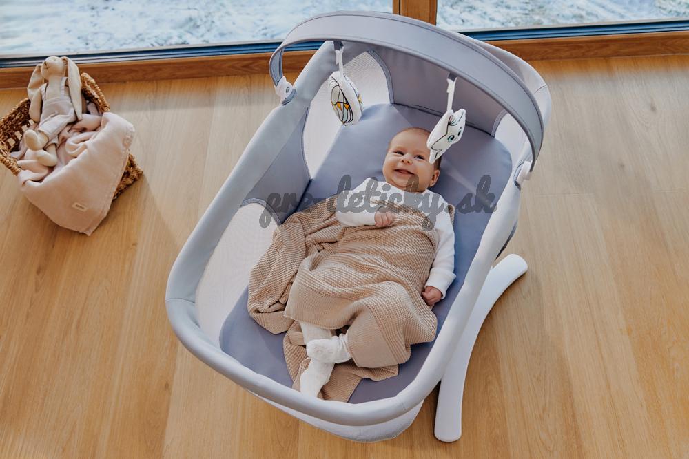 Ešte viac výhod kolísky Lionelo Bella Set 2v1: Všetky nastavenia výrobku sa určujú na dotykovom ovládacom paneli alebo pomocou diaľkového ovládania. Vďaka tichej prevádzke motora si môžete byť istí, že vaše dieťa nebude budiť, keď si sladko zdriemne. Tento model má 12 pokojných melódií a hrazdu s hračkou - 3 vo funkcii kolísania, 2 vo funkcii postieľky. Príslušenstvo ďalej precvičuje koncentráciu dieťaťa, poskytuje mu nové podnety a podnecuje ho k tomu, aby naťahovalo ruky. Kolíska Lionelo Bella Set 2v1 je ľahká a možno ho ľahko premiestniť a postaviť kdekoľvek. Protišmykové podložky chránia podlahu pred poškriabaním. V prípade znečistenia možno rám utrieť vlhkou handričkou a poťah matraca a čalúnenie je možné prať ručne. Súčasťou balenia je aj funkčná moskytiéra určená na vaničku.