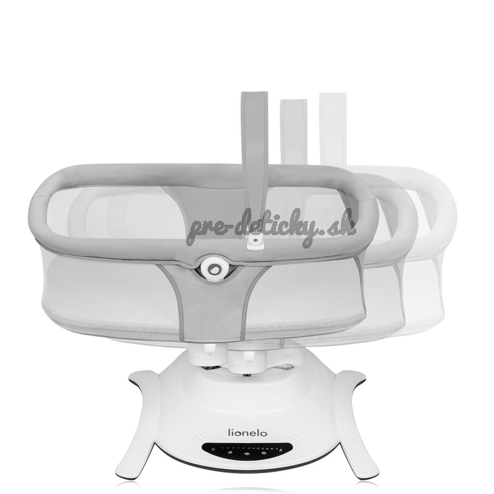 Ako v objatí rodiča: Pri navrhovaní kolísky Lionelo Bella Set 2v1 sme vychádzali z pohybov, ktoré dieťa cíti v náručí rodiča. Kolíska má 6 jedinečných kolísavých pohybov - 5 základných režimov a ďalší režim, ktorý sa mení každých 16 sekúnd. Vďaka kolísavému pohybu s viacerými dráhami zachytáva Bella prirodzený rytmus ako v rodičovskom náručí, takže kolíska je pre dieťa známym a príjemným miestom. Výber z 5 rýchlostí kolísania prispôsobí intenzitu kolísania preferenciám a nálade vášho dieťaťa.