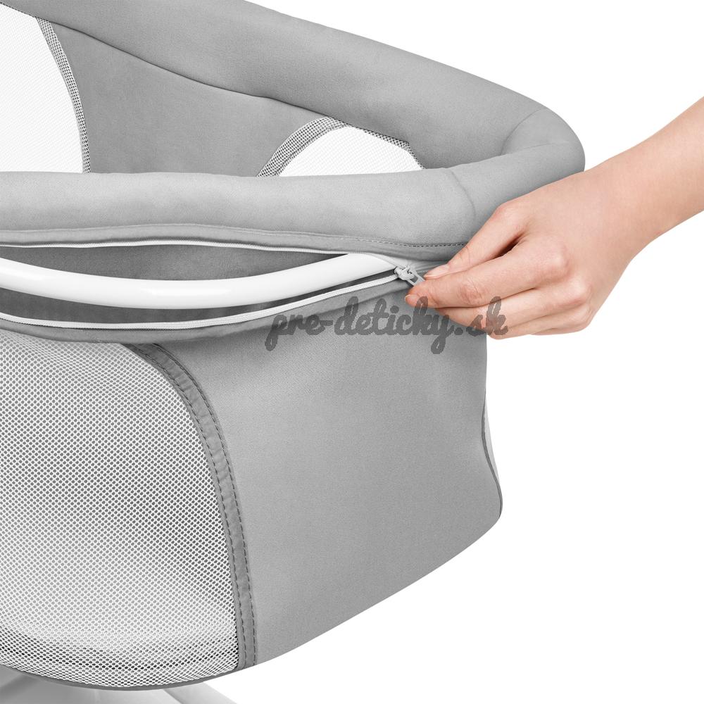 Sedadlo v tradičnej verzii kolísky je široké a vhodne tvarované, aby zabezpečilo pohodlnú a bezpečnú polohu dieťaťa. Má 5-bodové bezpečnostné pásy. Sedadlo má nastaviteľný sklon v 3 stupňoch - od polohy v ľahu, ktorá je ideálna na odpočinok, cez pololeh až po sed - pre deti, ktoré sú zvedavé objavovať svet a chcú sa viac zapájať do rodinných interakcií. Nájdete tu aj mäkký, mimoriadne pohodlný vankúš, ktorý sa prispôsobí telu vášho dieťatka a poskytne mu tú správnu oporu. Jeho vonkajšia strana je vyrobená z prírodnej bambusovej tkaniny, ktorá má množstvo výhod. Tento vzdušný, na dotyk príjemný materiál môže prísť do priameho kontaktu s pokožkou, a to aj na najcitlivejších miestach tela. Tkanina je priedušná, poskytuje účinné vetranie a zabraňuje nadmernému poteniu. Vďaka svojim hygroskopickým vlastnostiam bambus absorbuje vlhkosť, čím zabraňuje rastu húb a plesní. Neobsahuje žiadne umelé prísady. Je nielen ekologický, ale aj bezpečný pre alergikov.